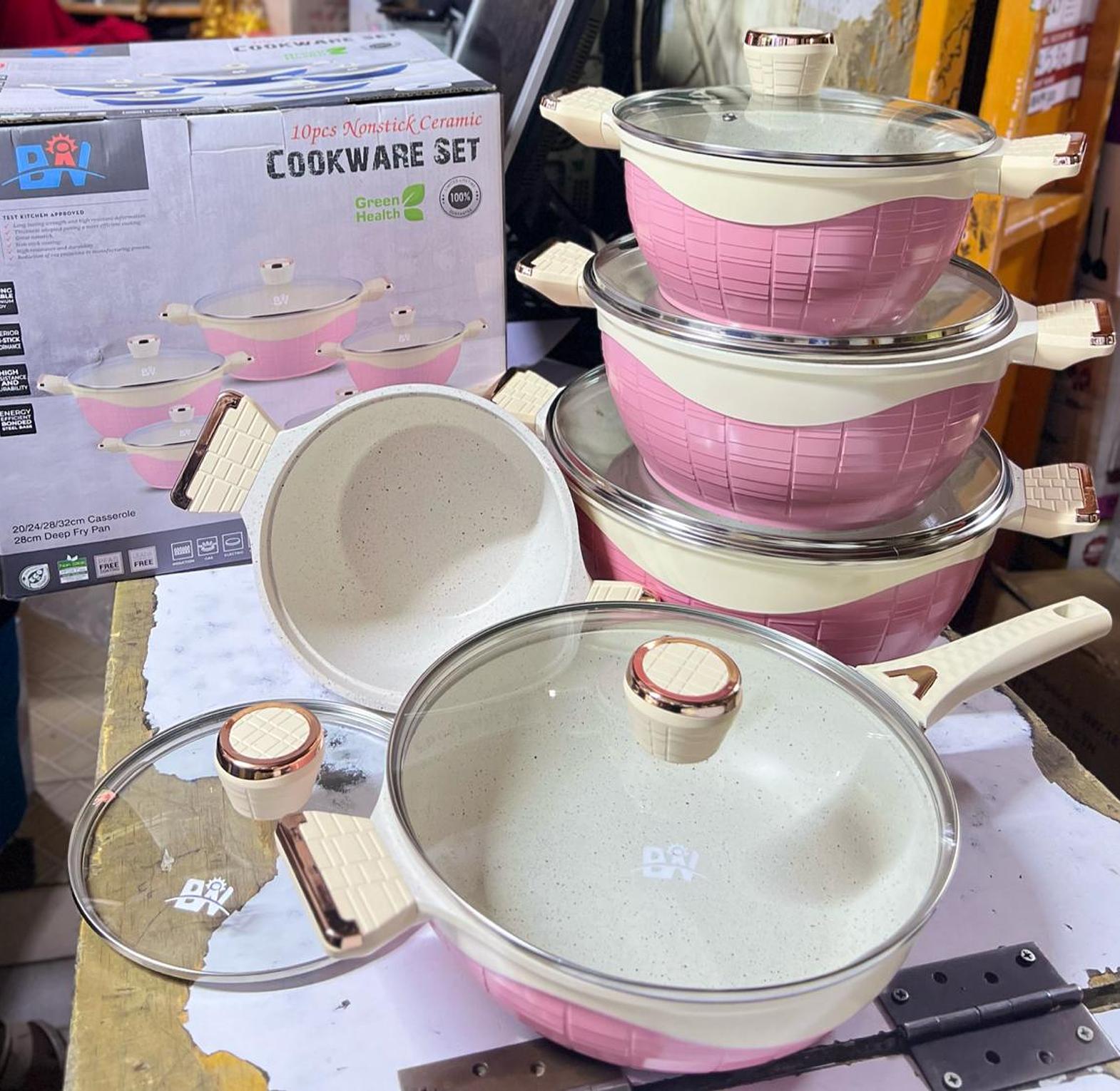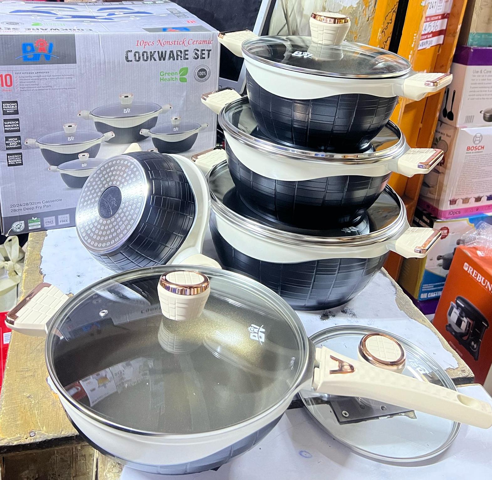 10 pcs healthy ceramic coating cookware Super nonstick Induction compatible Glass lid and stay cool