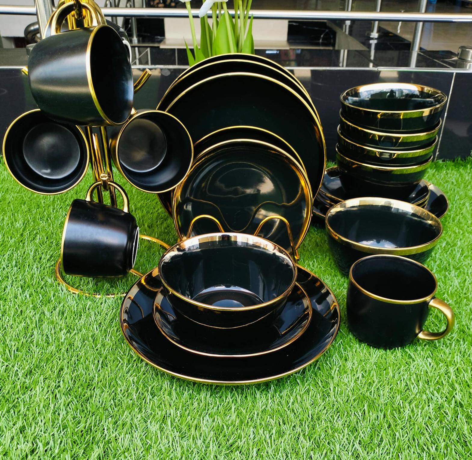 24pcs Black dinner set 6 dinner plates 6 side plates 6 bowls 6 mugs