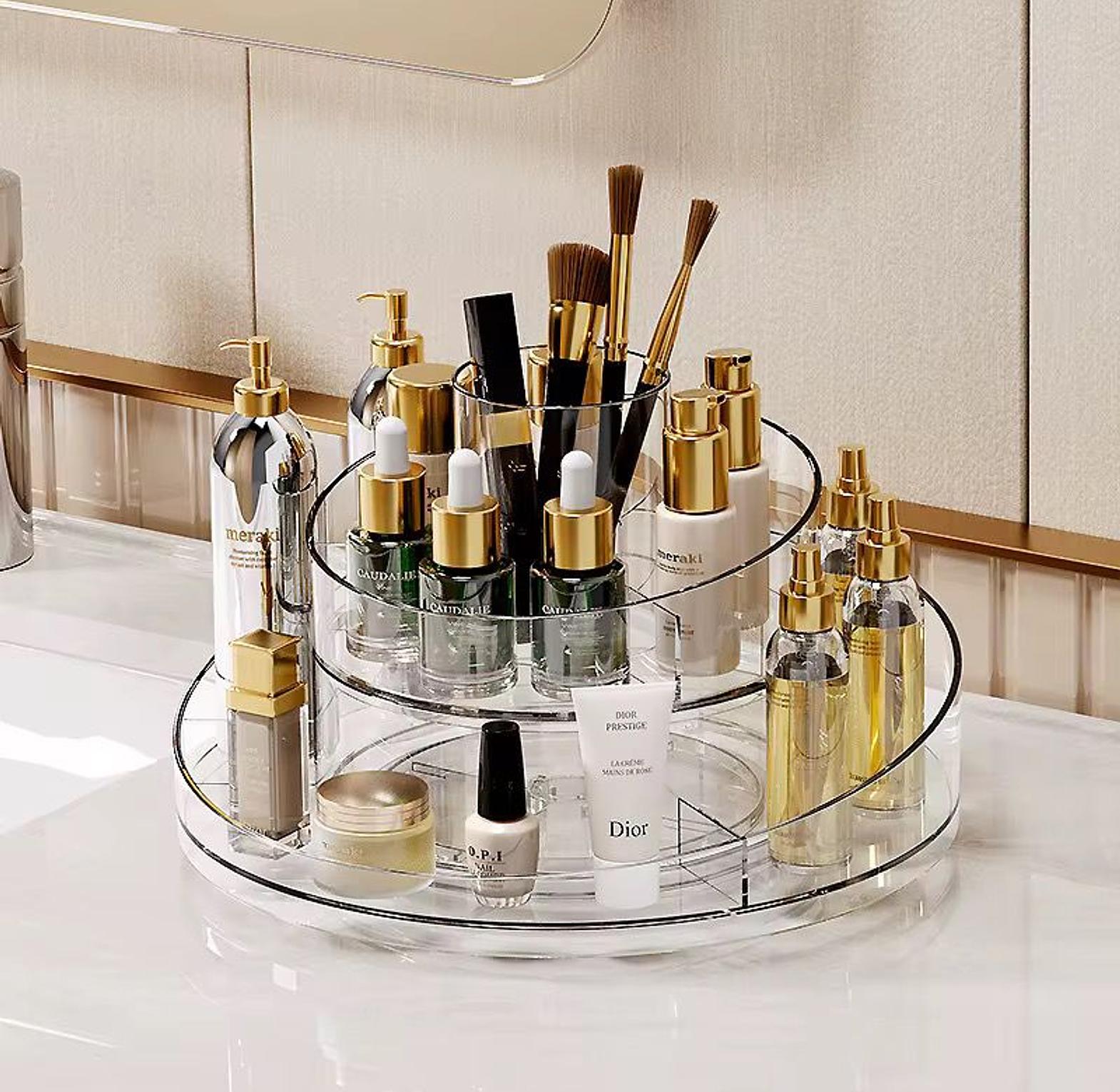• 360° 2 Tier Acrylic  organiser for  serum,lipstick etc with a smooth, silent rotating base.