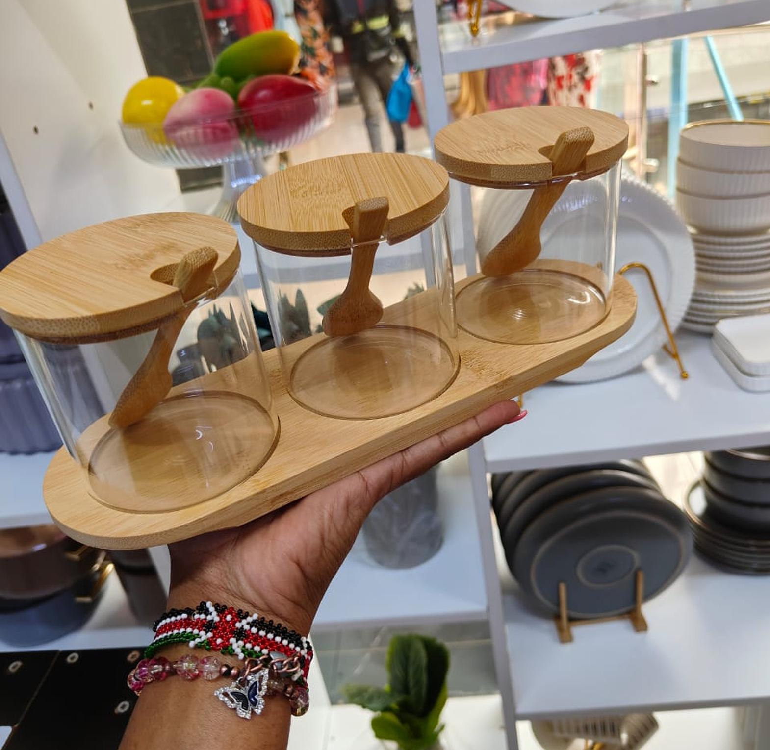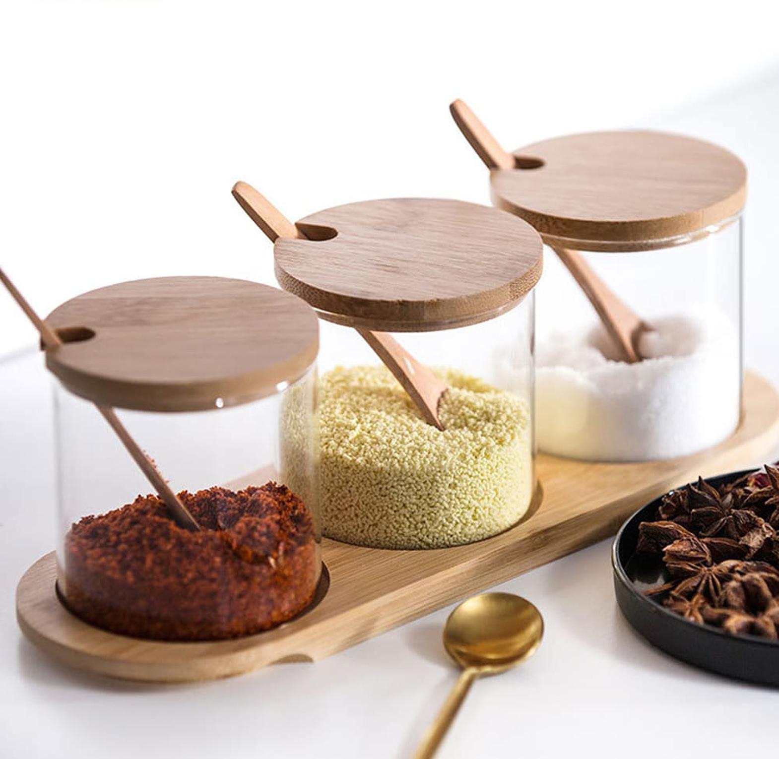 3 In 1 Spice Jars with bamboo lids
