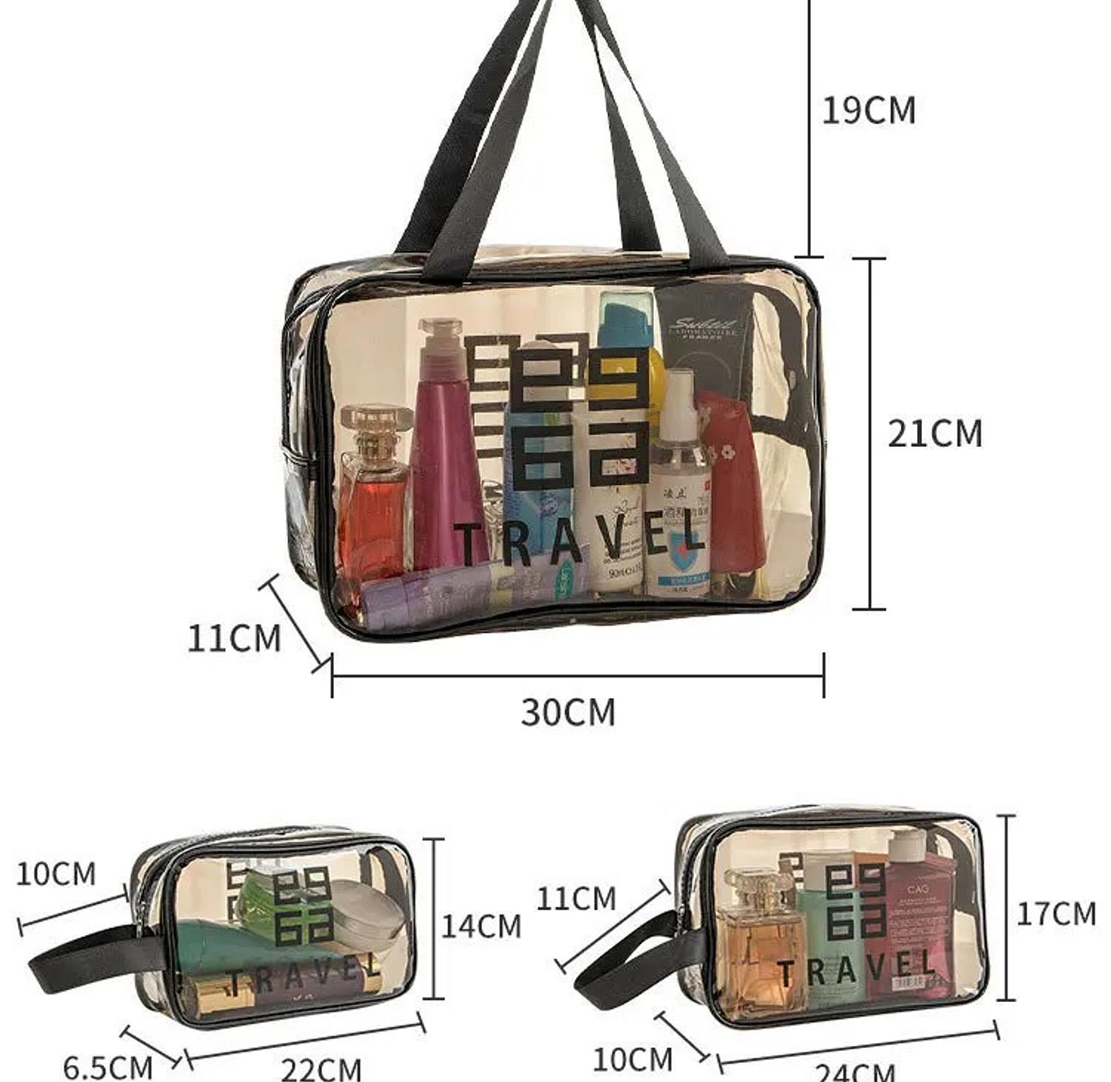 3pc Large Capacity Waterproof PVC Transparent Makeup Bag Shopping Bag Travel Storage Bag Cosmetic Bag