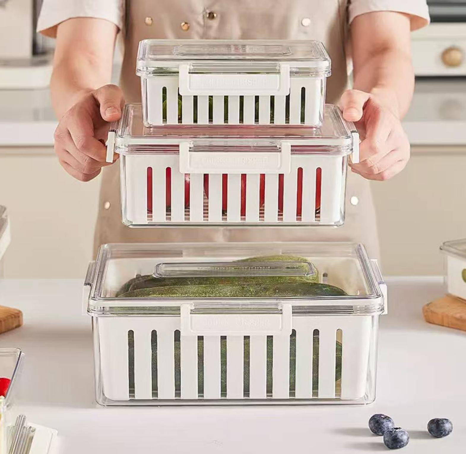 3pcs Stackable Food Storage Containers ▪︎With drainer basket ▪︎ Freezer safe & airtight lid ▪︎Perfect for fridge & kitchen organization
