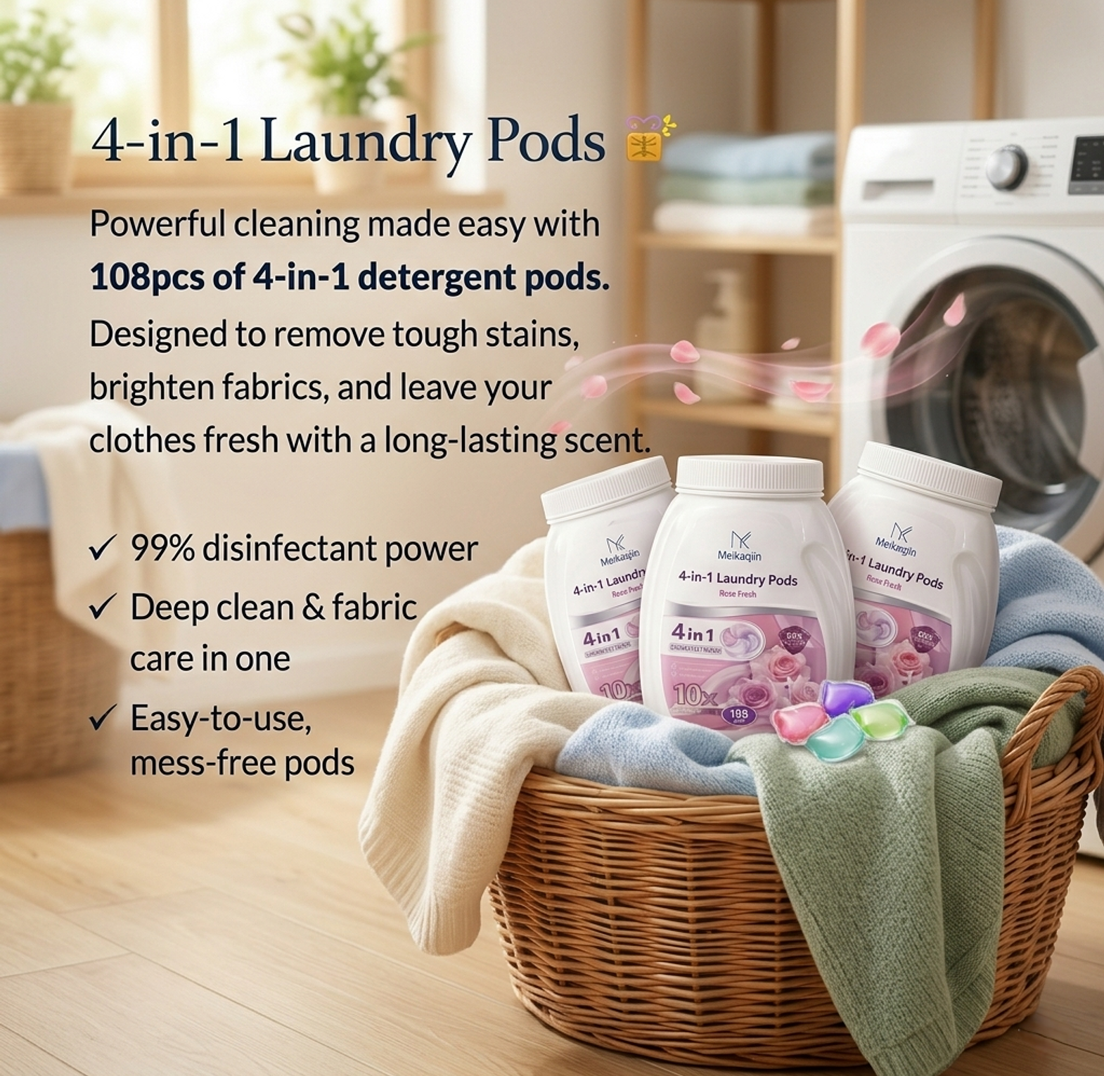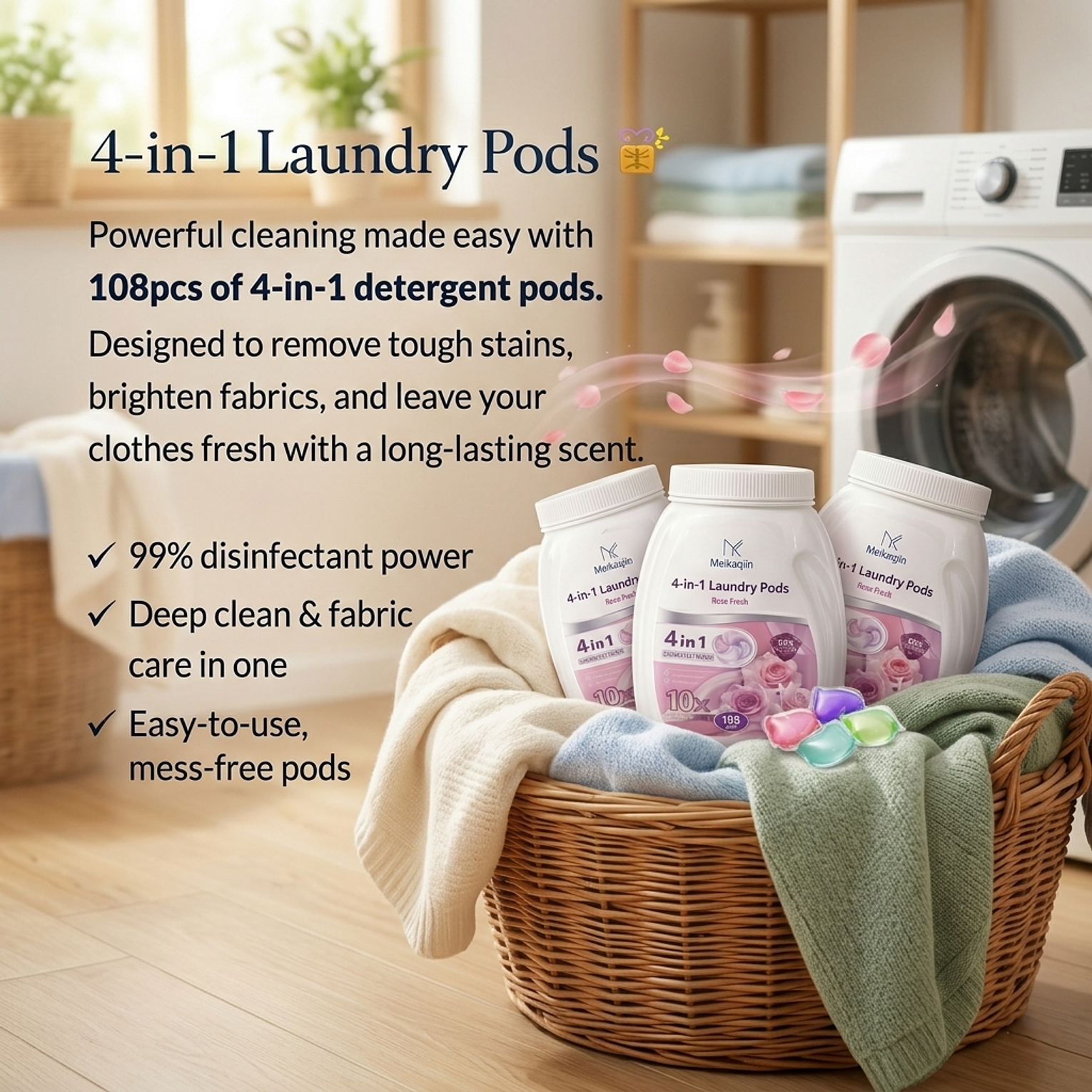 ▫️Powerful cleaning made easy with 108pcs of 4-in-1 detergent pods.