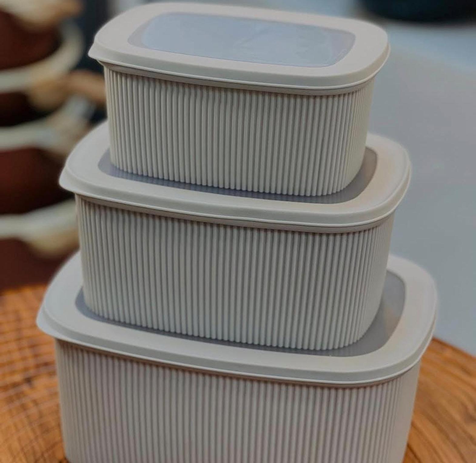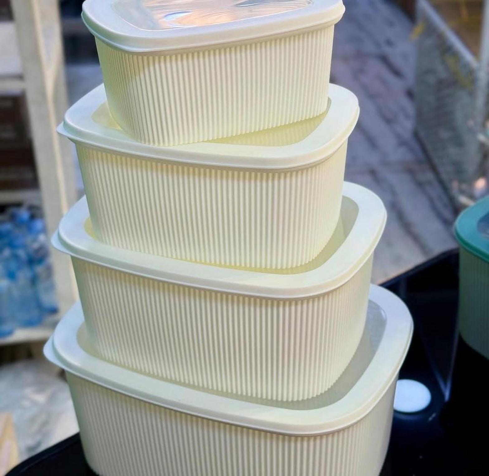 4pcs Multipurpose storage containers ▫️ Microwave and dishwasher safe. ▫️Leak proof ▫️ Color: white, grey