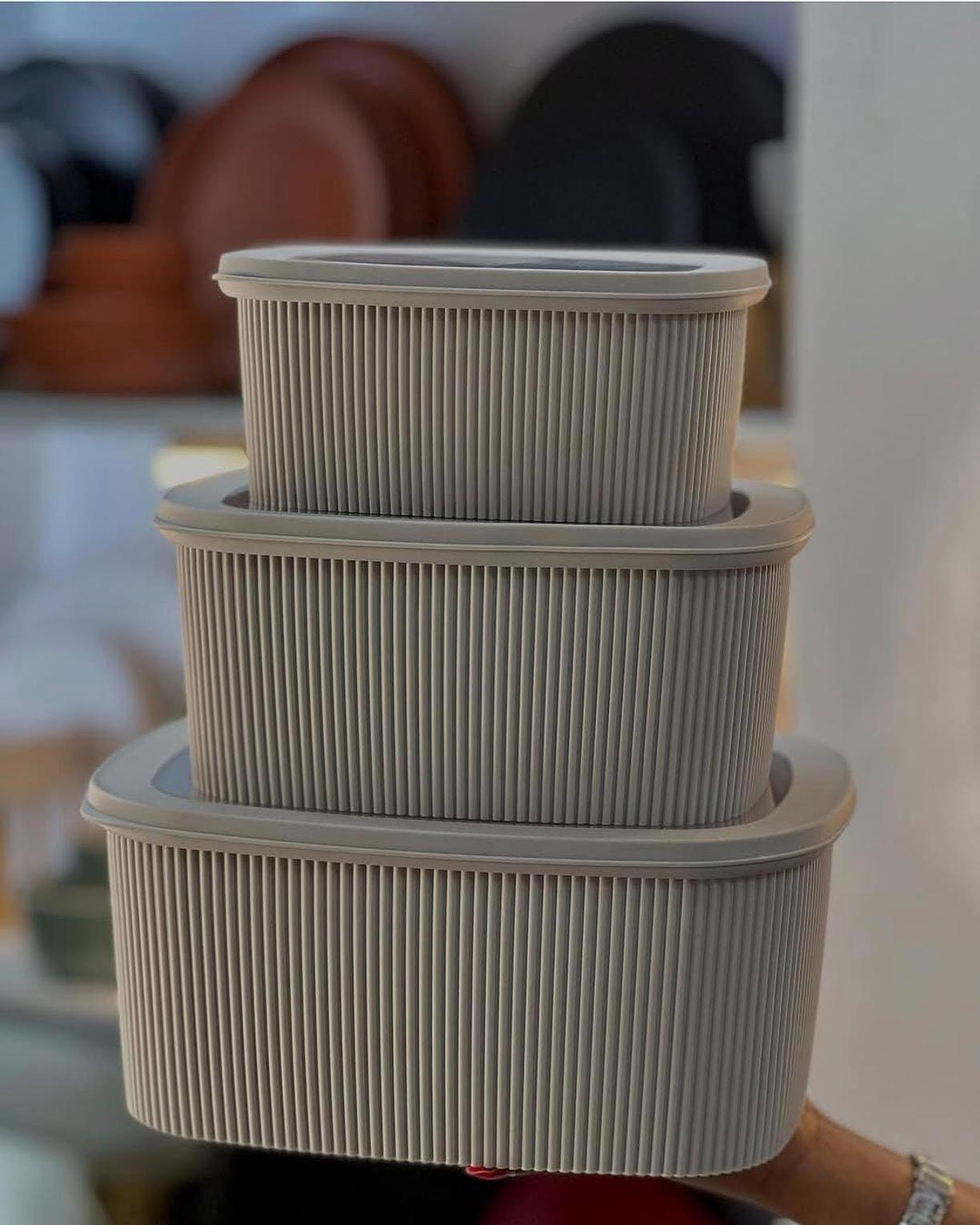 4-Piece Food Storage Containers – Stylish ribbed design with transparent lids for easy visibility. Airtight, durable, and perfect for storing leftovers, fruits, snacks, and dry foods while keeping your kitchen neat and organized.