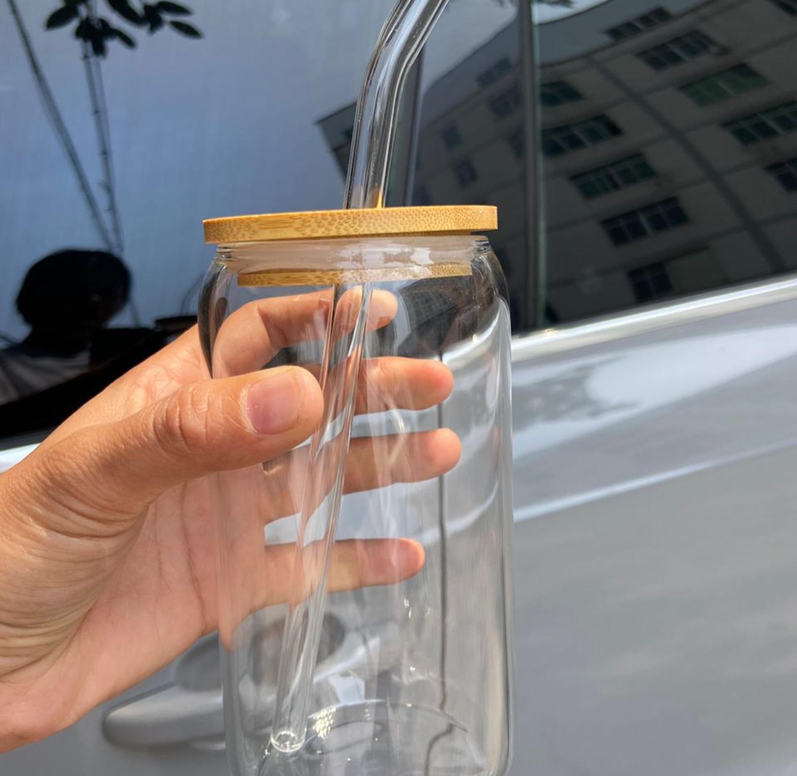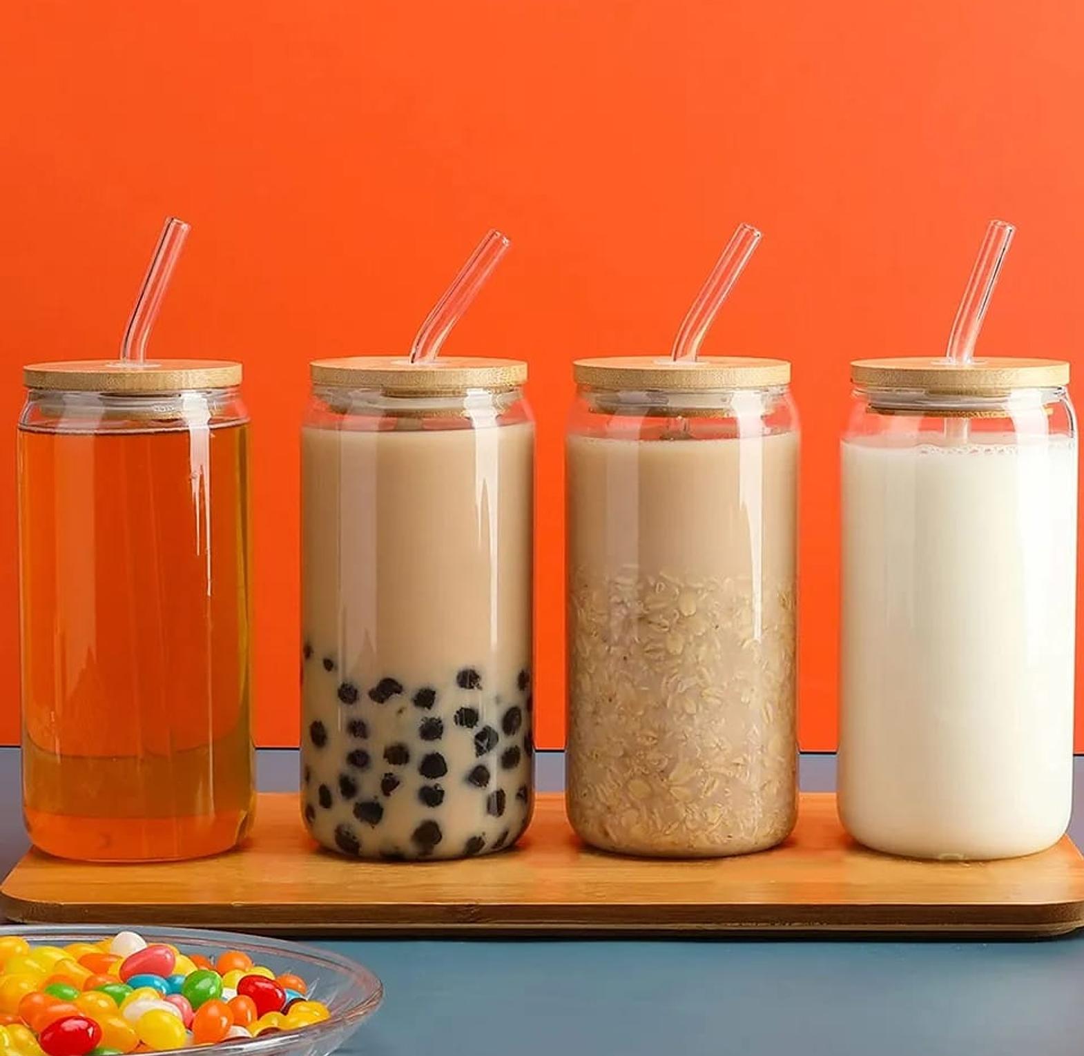 500ml Glass Cup With Lid and Straw Transparent juice glass