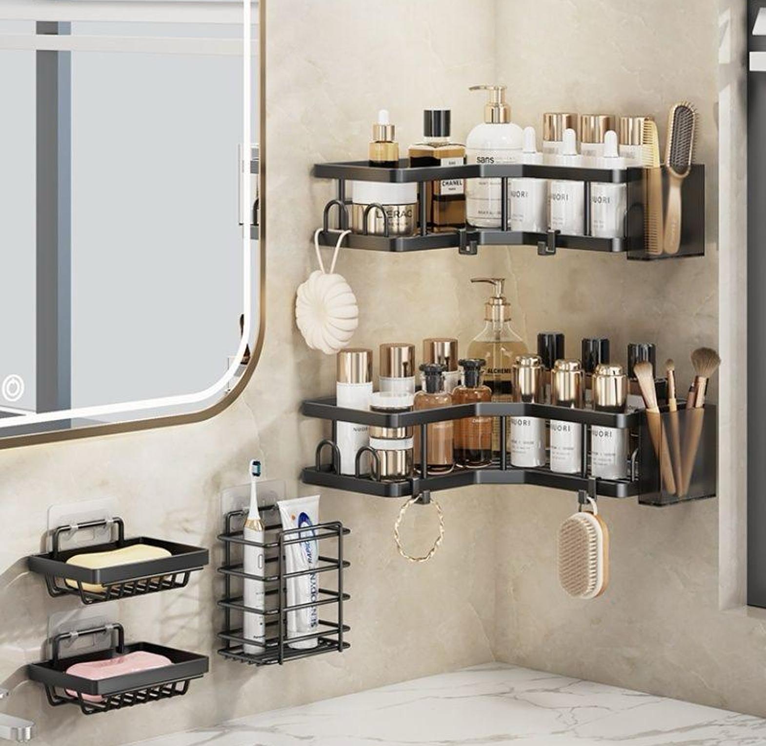 5pcs Set   Corner Bathroom organizer with brush holder compartment