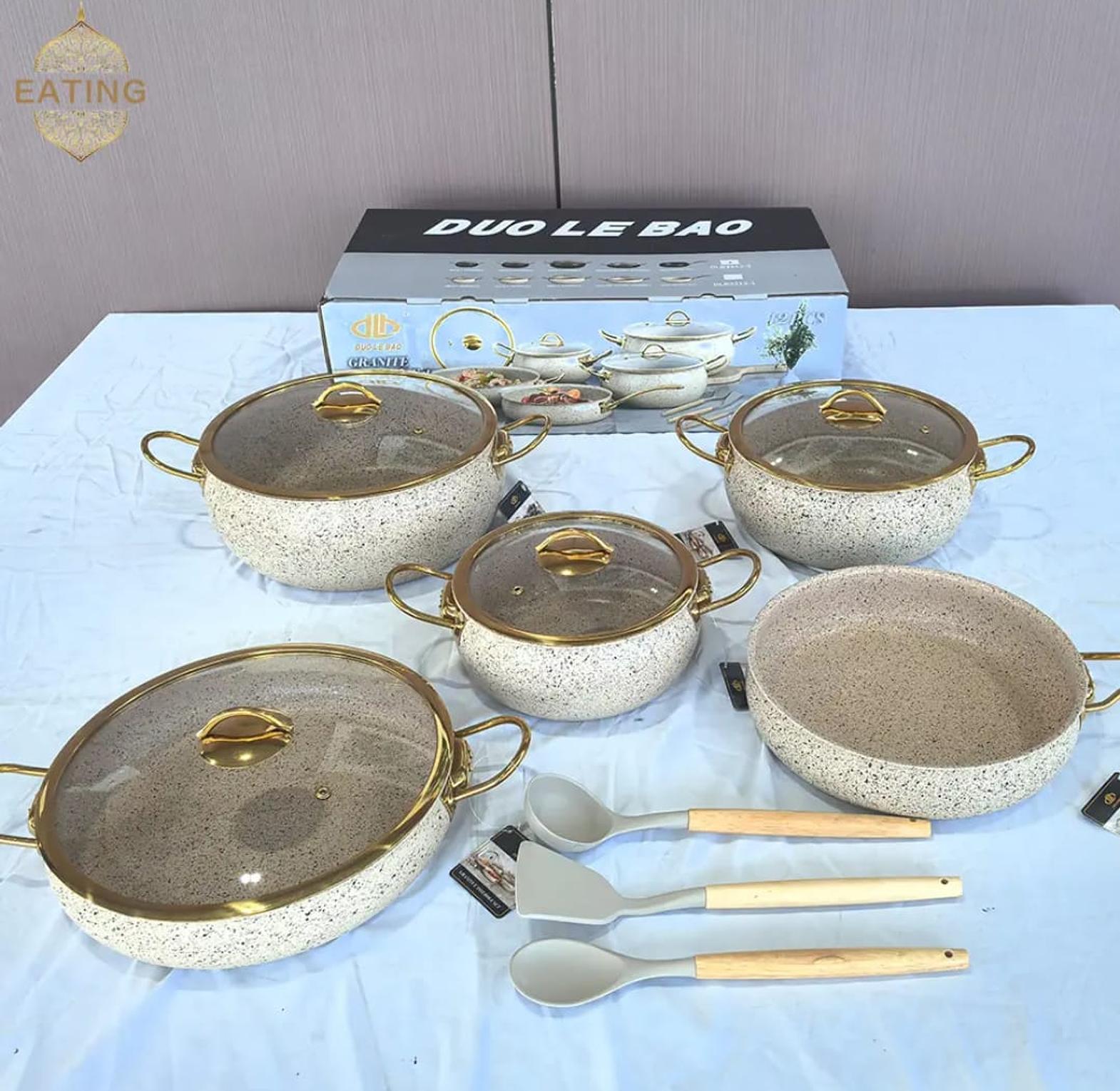 9pcs granite cookware set ▫️With free 3 pcs silicone cooking spoons ▫️ Premium heavy quality *ar