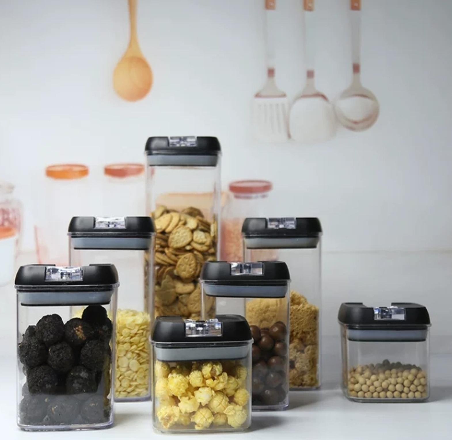 Acrylic 7pcs set food containers ▪︎Capacity: 500ml*2, 800ml*2, 1200*2, 1900ml*1 ▪︎With a pen and stickers