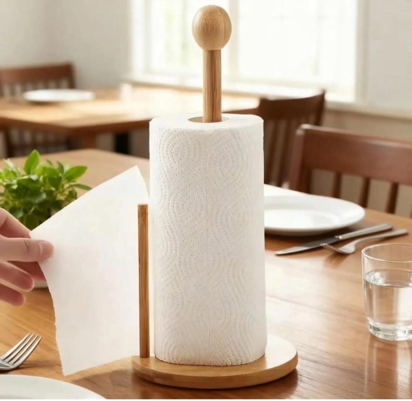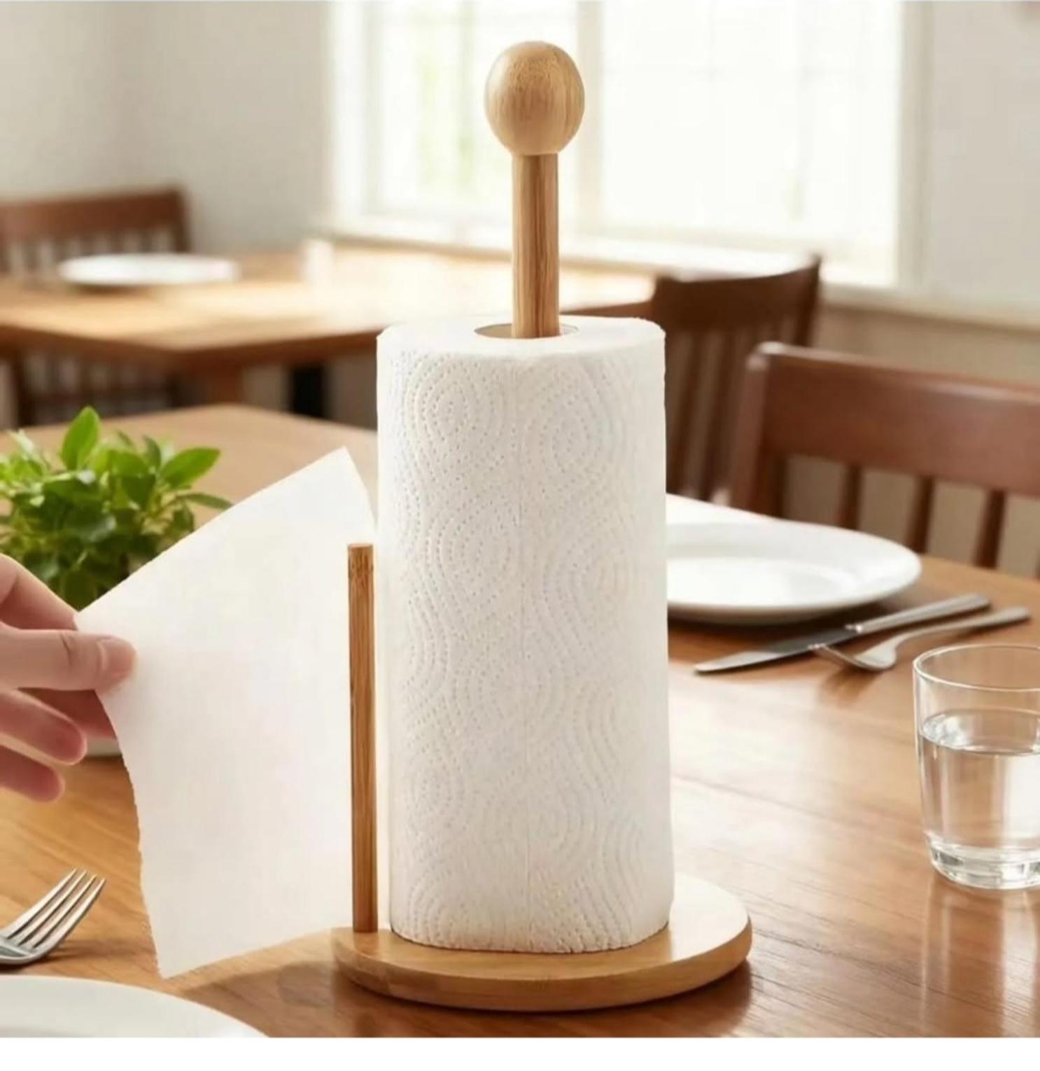 Keep your kitchen tidy and stylish with this bamboo kitchen paper towel holder. Designed for easy access and quick tear-off, it provides a sturdy and eco-friendly way to store and dispense paper towels while adding a natural touch to your countertop.