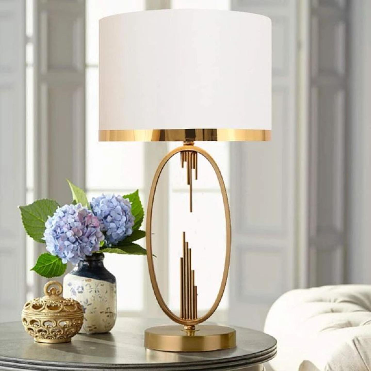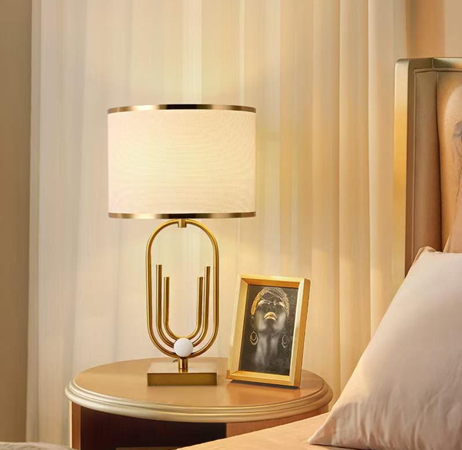 ▫️Sophisticated gold frame with a soft fabric shade and elegant metallic trim — perfect for adding warmth and a refined touch to your bedside or console