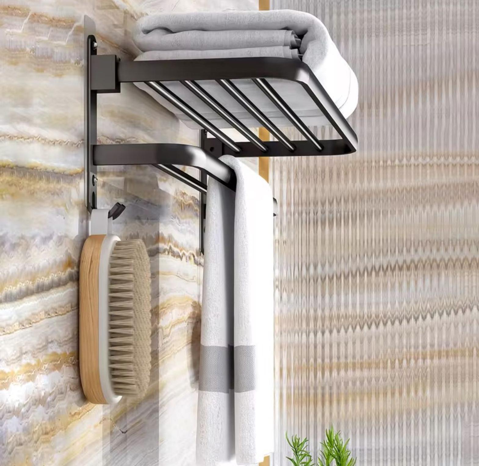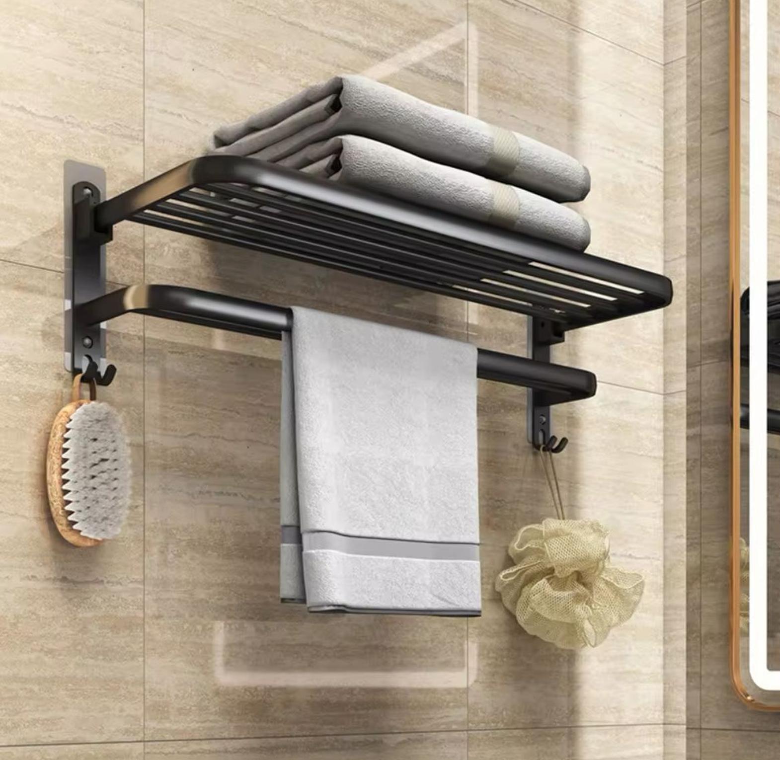 Black Heavy Aluminium Double Layer Towel Rack Size 60cm
