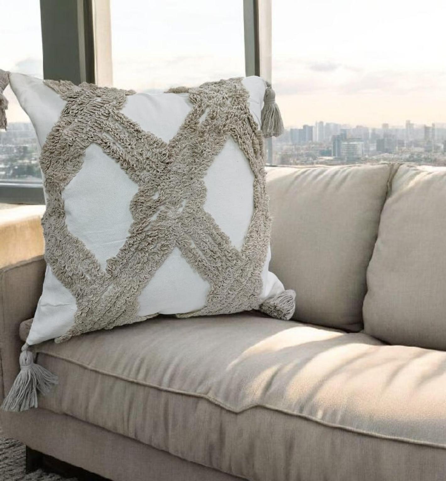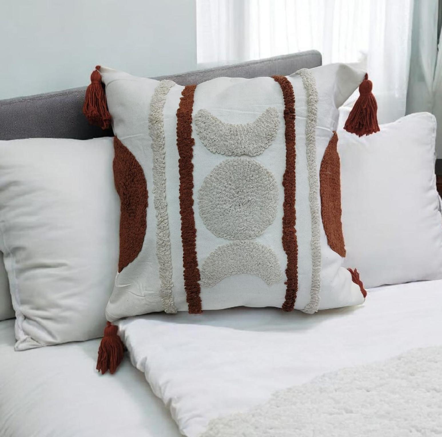 Boho pillowcases featuring textured tufted patterns and chic tassel details, perfect for adding warmth, style, and a cozy bohemian touch to your living space.
