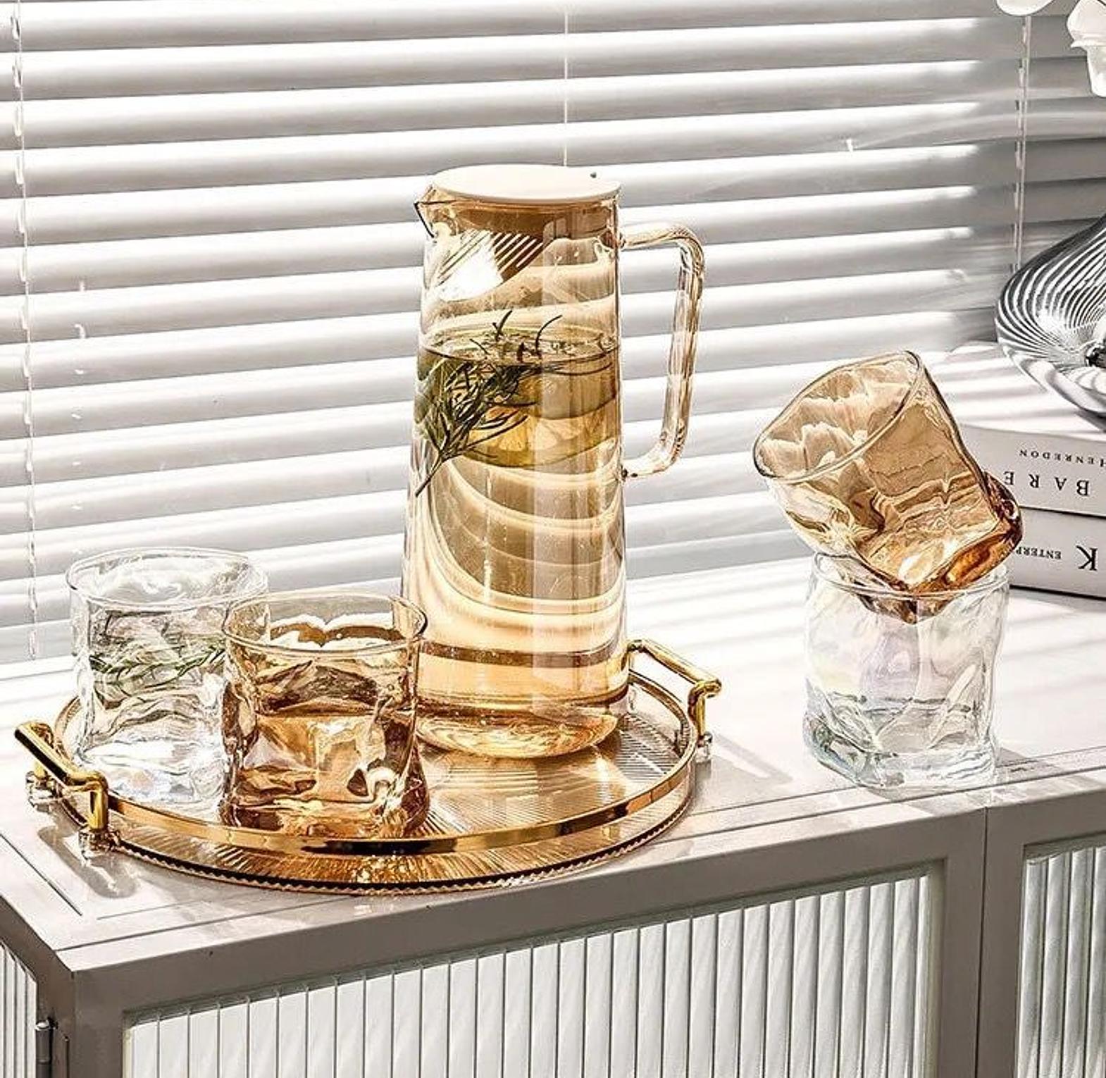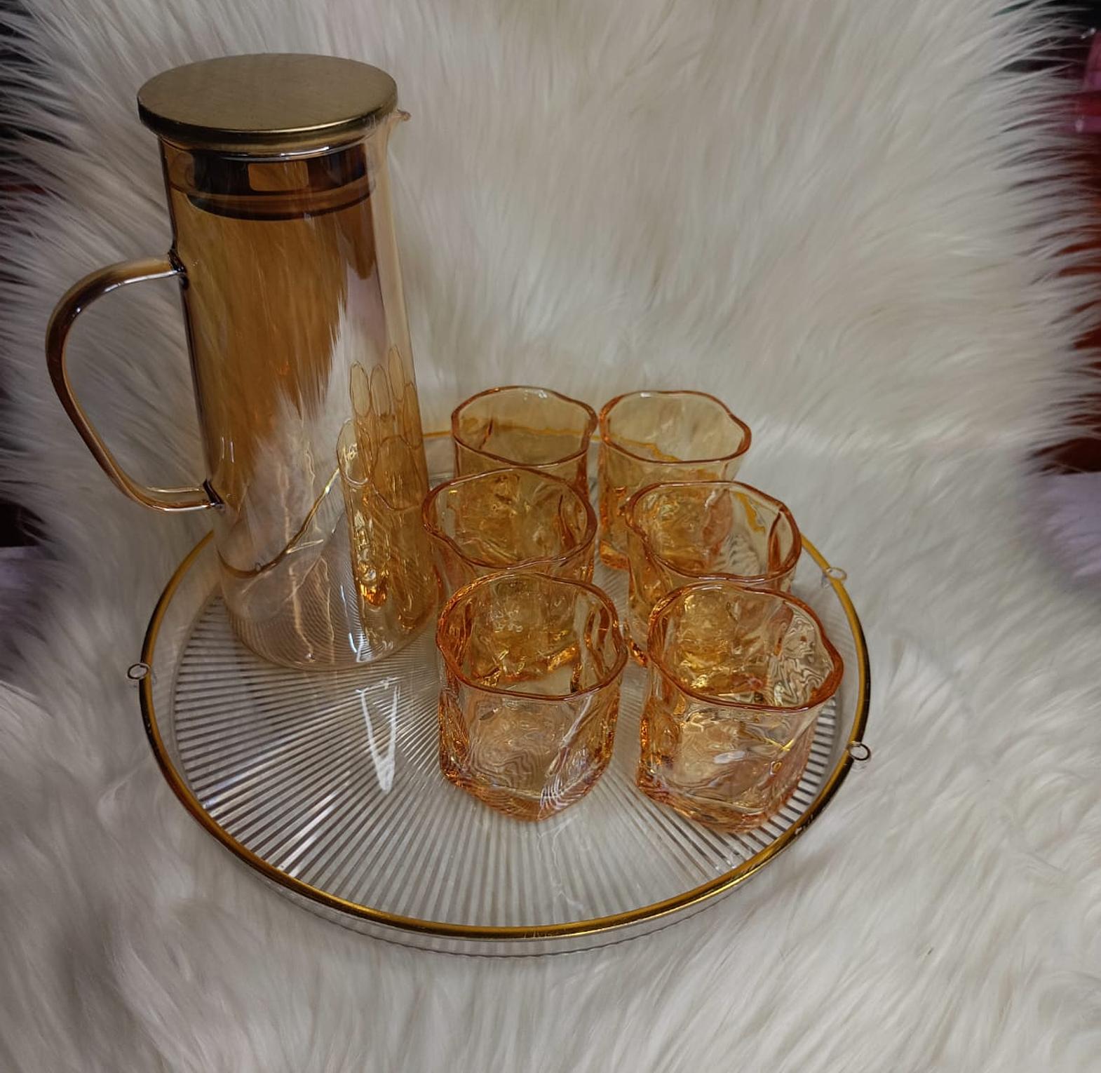 Borosilicate glass jar set Comes as a set of 7pcs 6pcs of 120mls glasses 1pc 1500mls jug