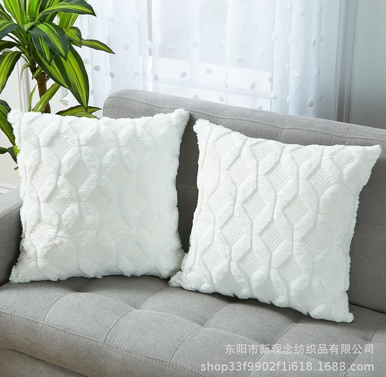 Decorative Throw Pillow Covers. Rustic Embroidered Plush Short Faux Wool Pillowcase Super Soft Cushion Case