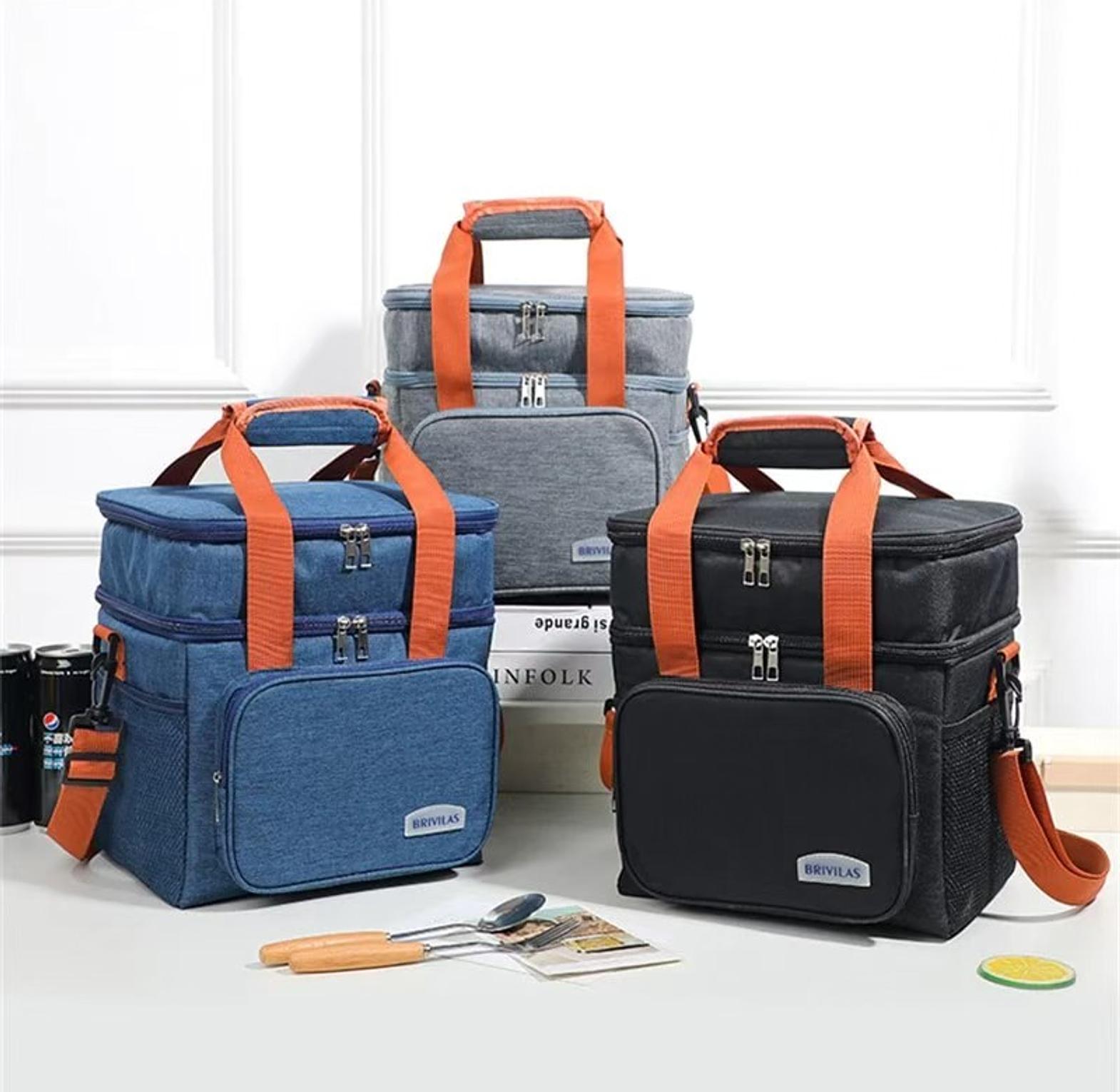 Double layer insulated lunch bag with removable strap.