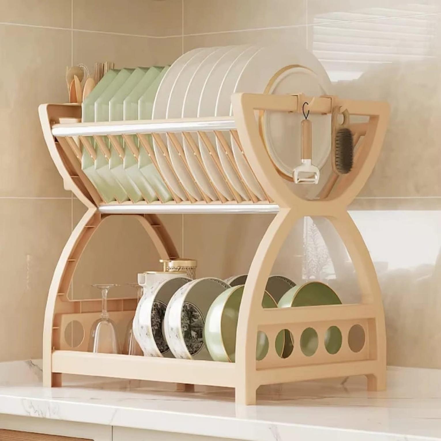 Durable dish rack designed for easy drying and organized storage of plates, cups, and utensils.