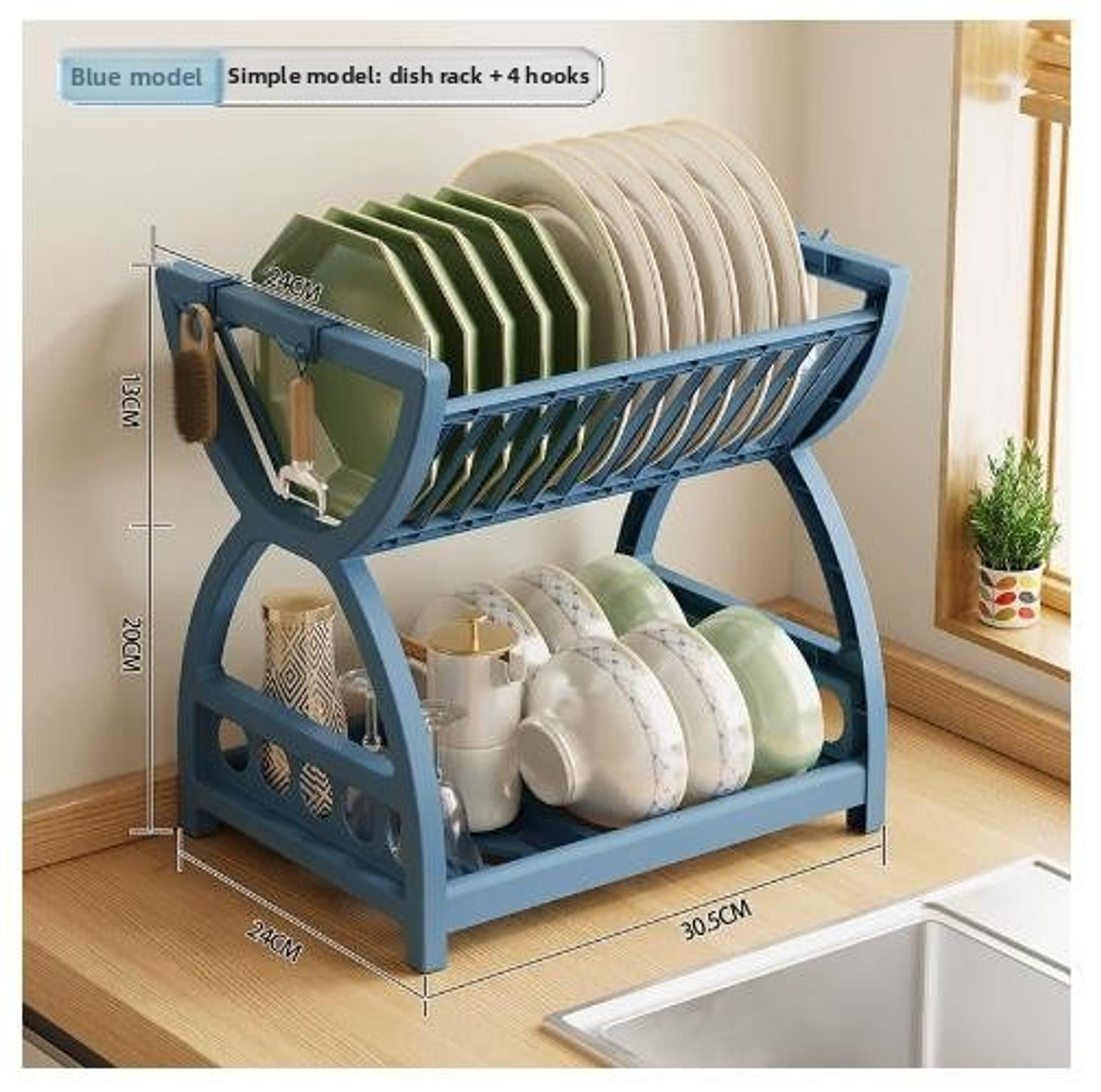 Double Sink Bowl Drain Rack Tableware Rack Kitchen Storage Plastic Bowl Rack Drain Hose Storage