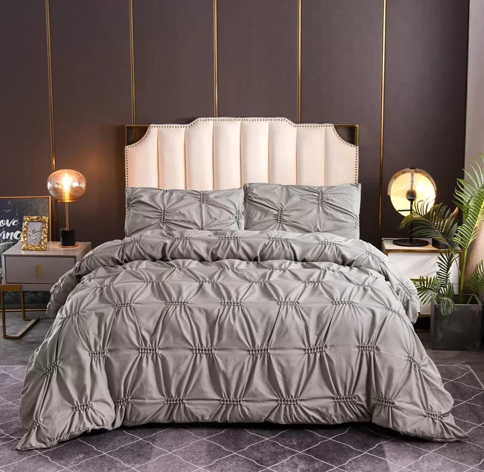 3pc Double Pinch Pleat Duvet cover set ➖Elegant Comfort Luxury Soft Pintuck materia ▫️ Quantity:👇🏻 ➖ 1Duvet cover ➖2pillowcases