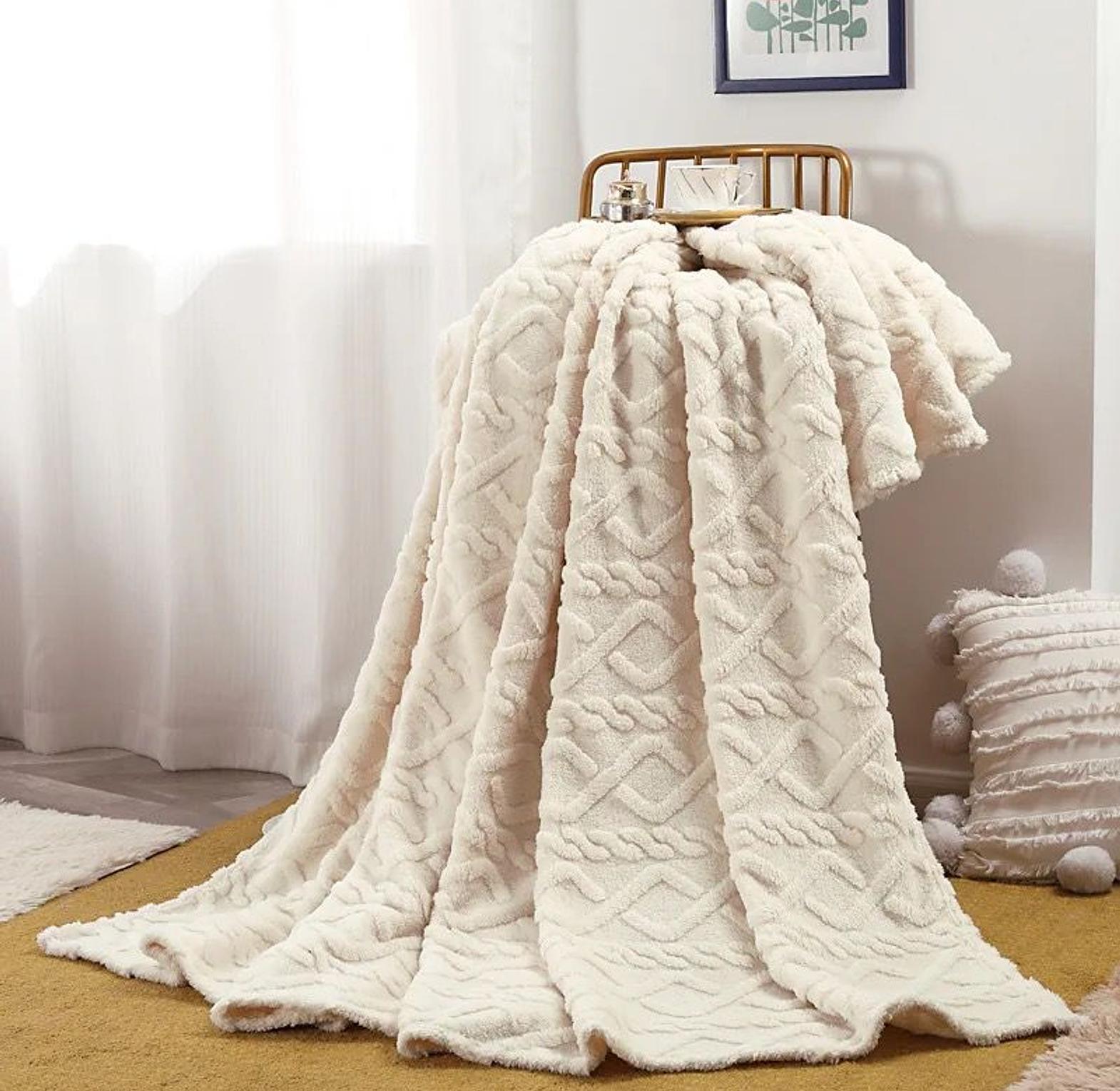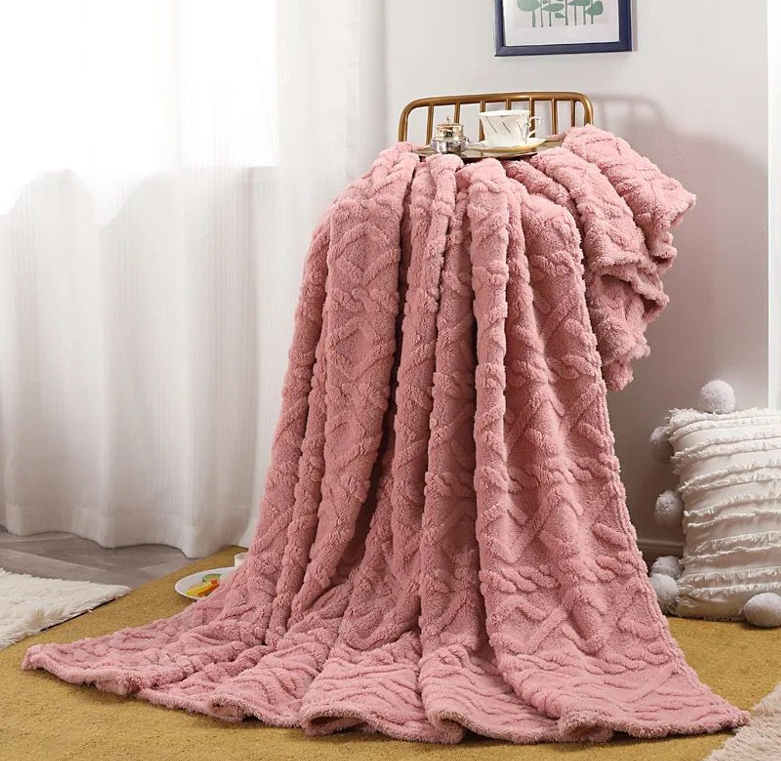 fleece throw blanket size 150×200 cm colors:Pink ,off white ,grey ,mustard, beige