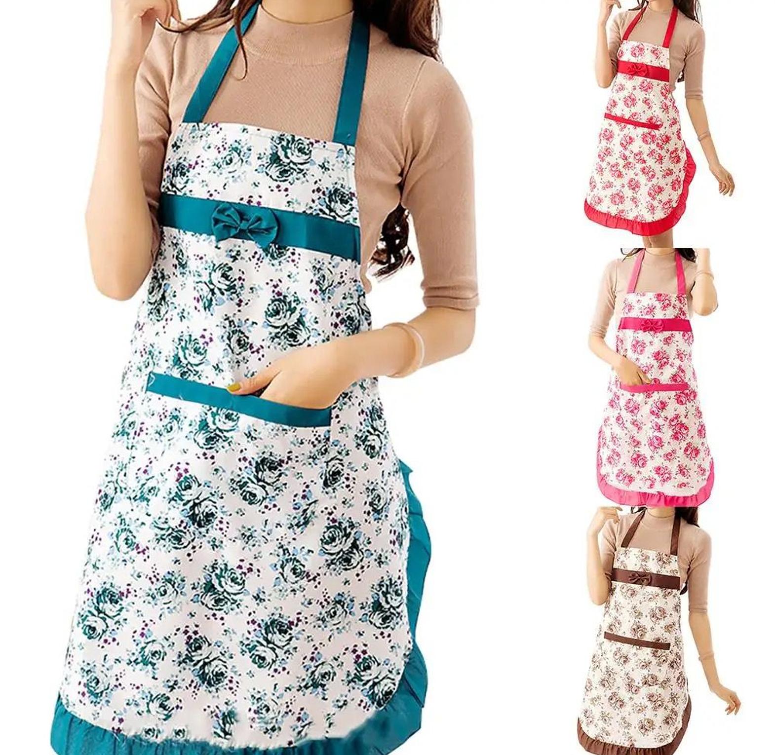 Floral sleeveless cooking apron ✅material canvas