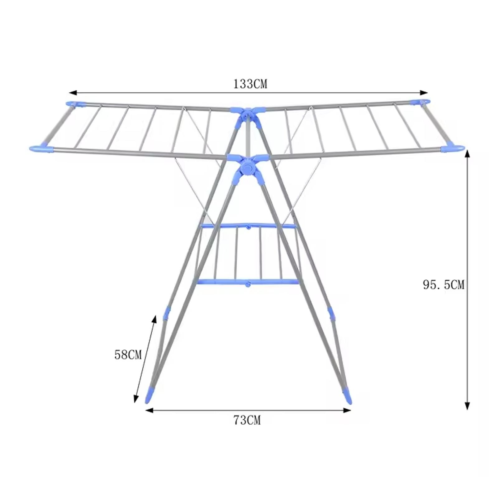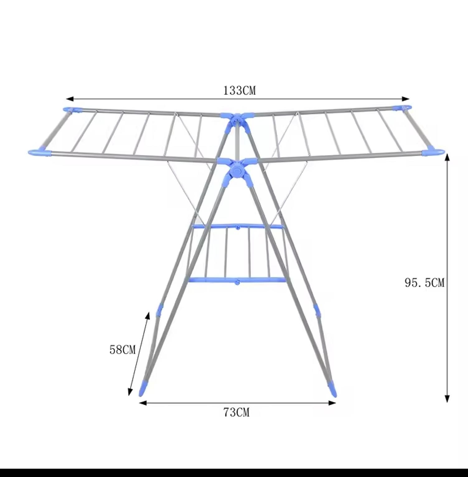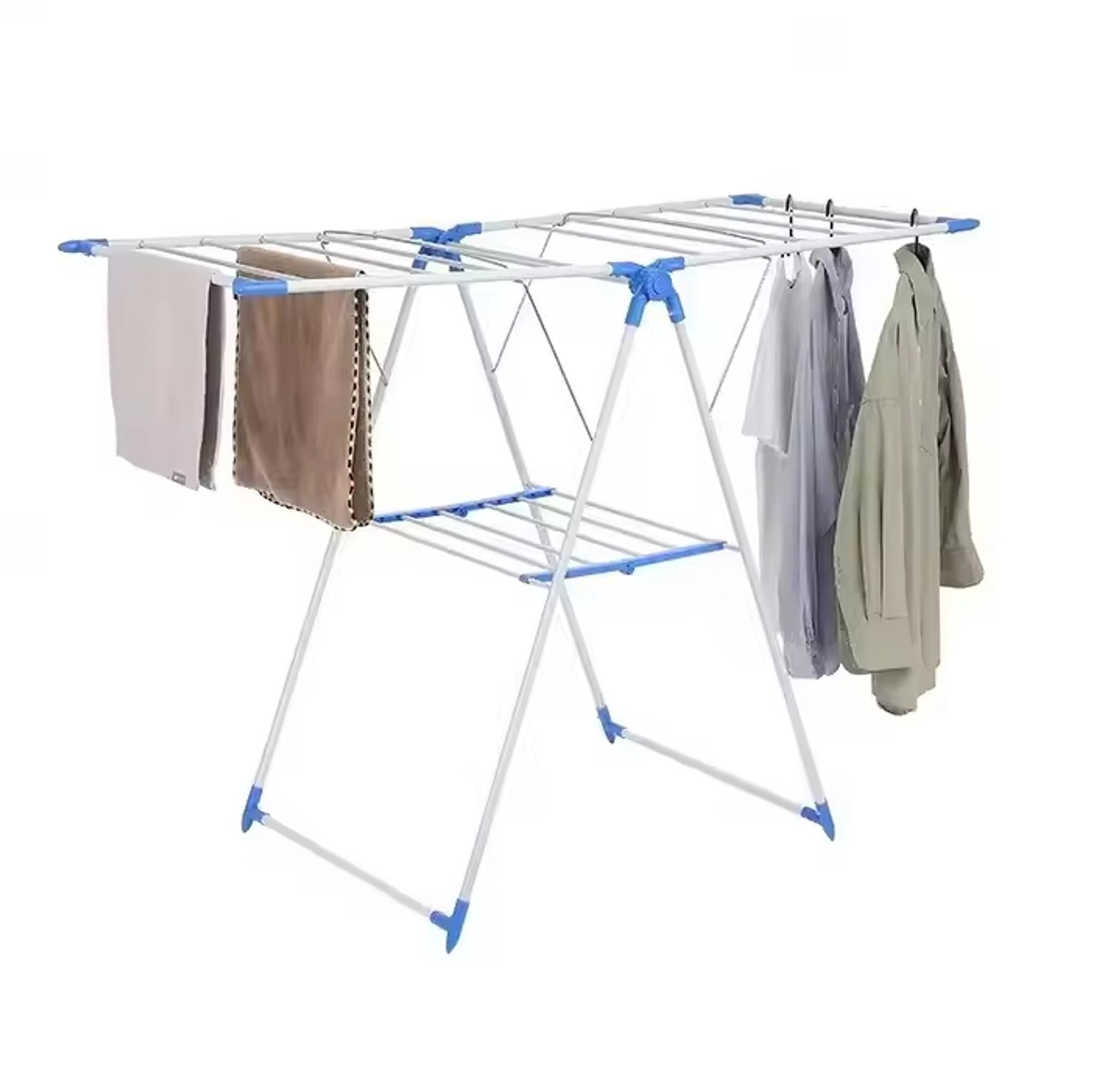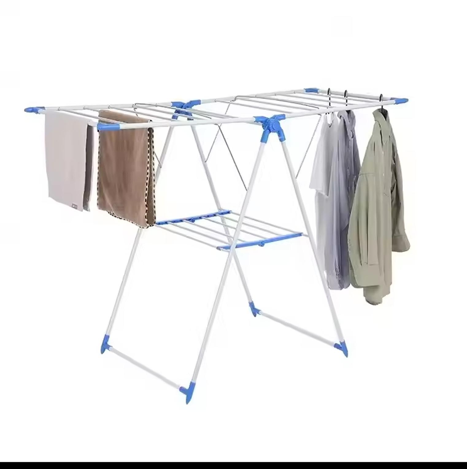 Foldable multi-purpose clothes drying rack designed with a strong metal frame and multiple hanging bars for maximum drying space. Lightweight, sturdy, and easy to store—perfect for indoor or outdoor laundry use