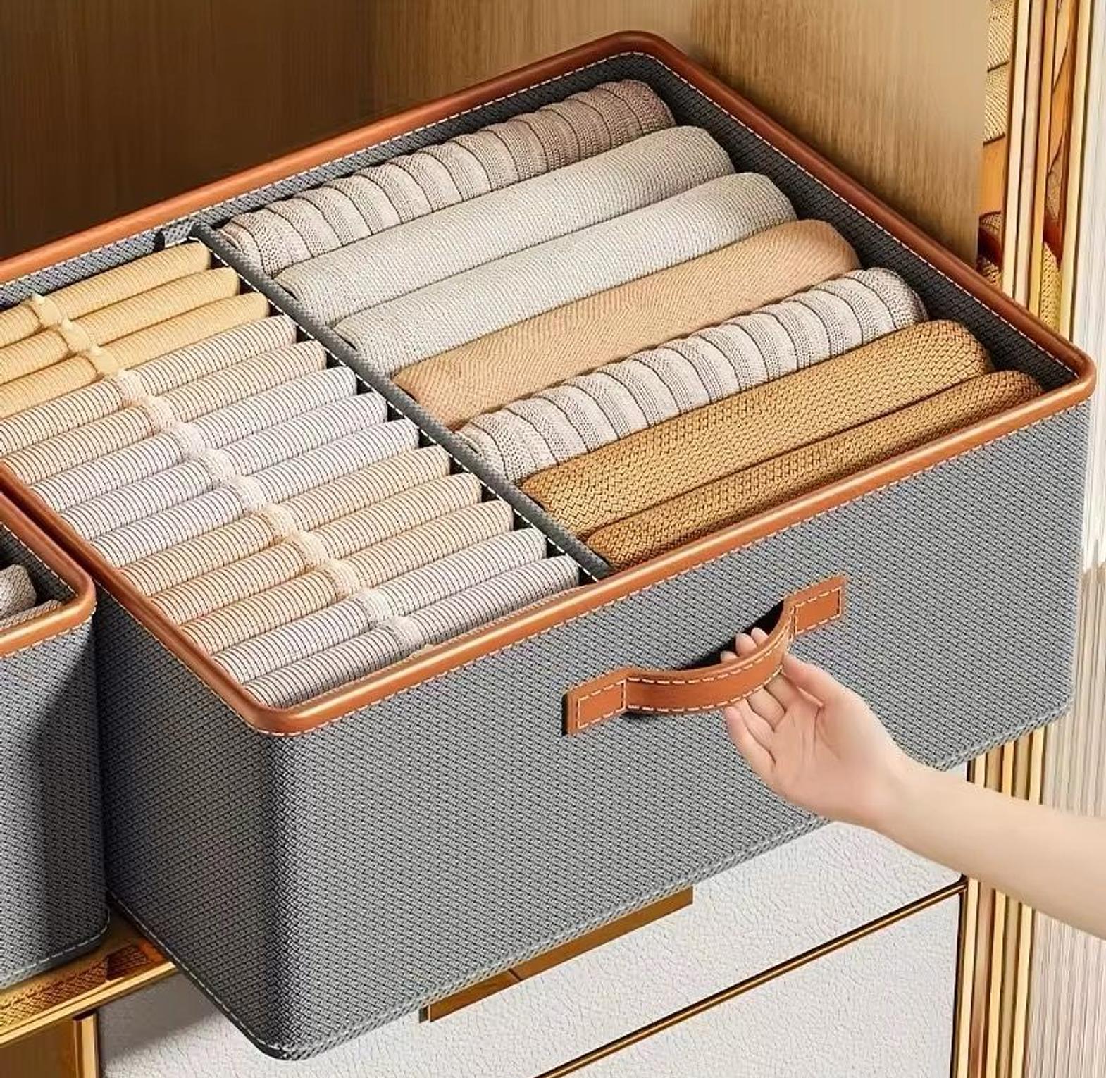 Upgrade your wardrobe and drawer organization with this premium fabric storage organizer box, designed to keep your clothes, accessories, and essentials neatly arranged and easy to access. Featuring multiple compartments, it helps maximize space while maintaining a clean, stylish look.