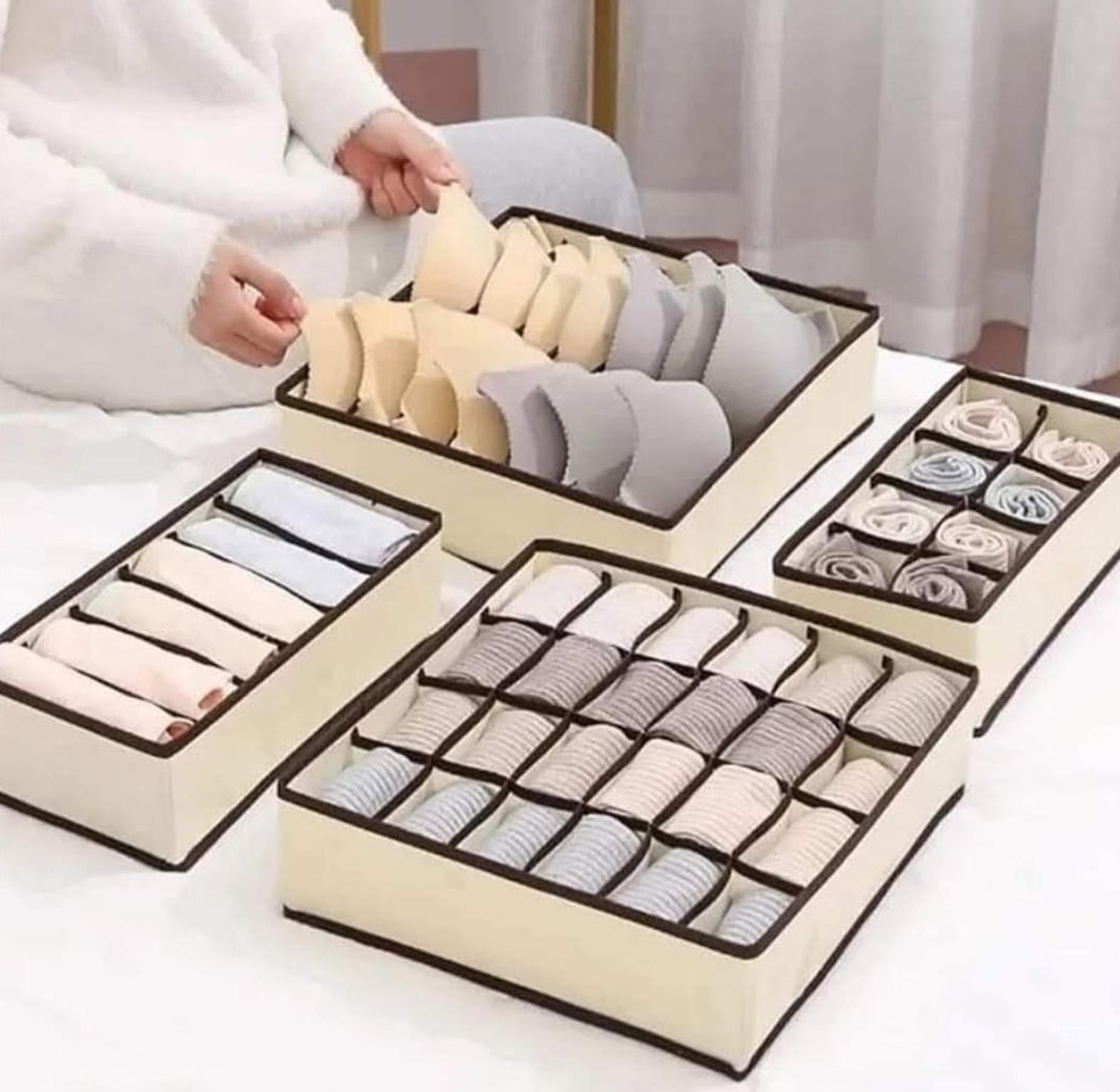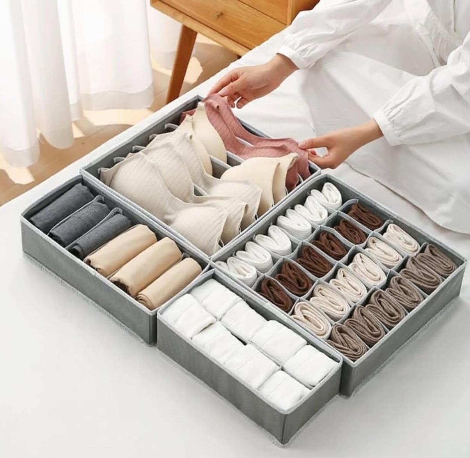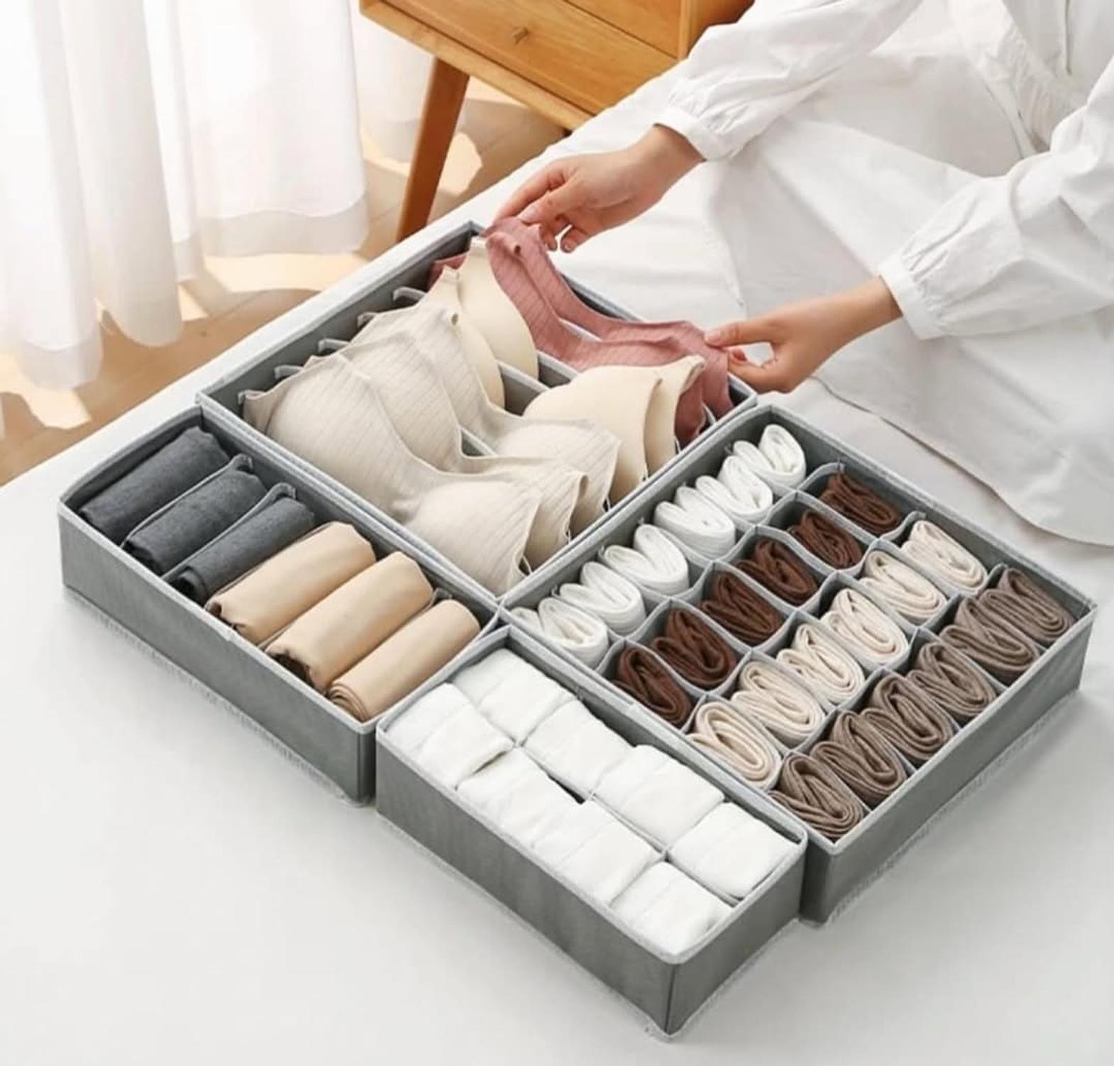 Drawer Storage Organizer Set – Practical compartment organizers designed to neatly store socks, underwear, bras, and small clothing items. Keeps drawers tidy, easy to access, and saves space in your wardrobe.