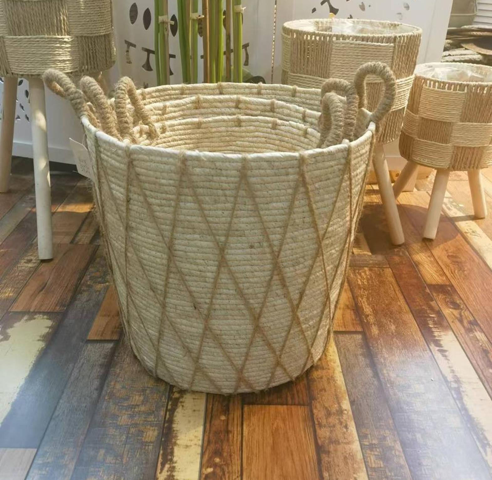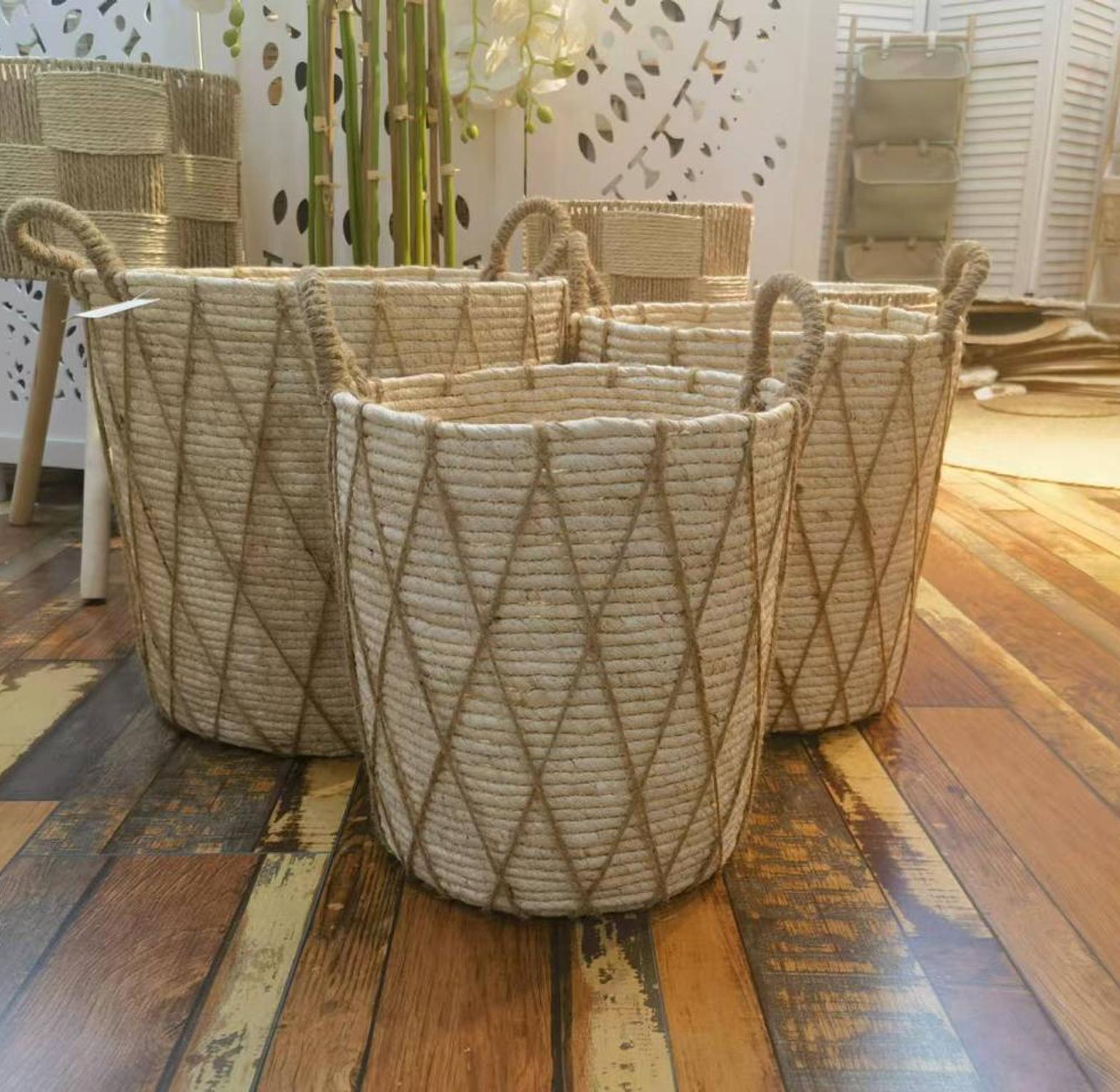 High Quality Set of 3 Stackable handmade baskets SIZE Big : 34cm×36cm Medium :32cm×33cm Small : 26cm×29cm