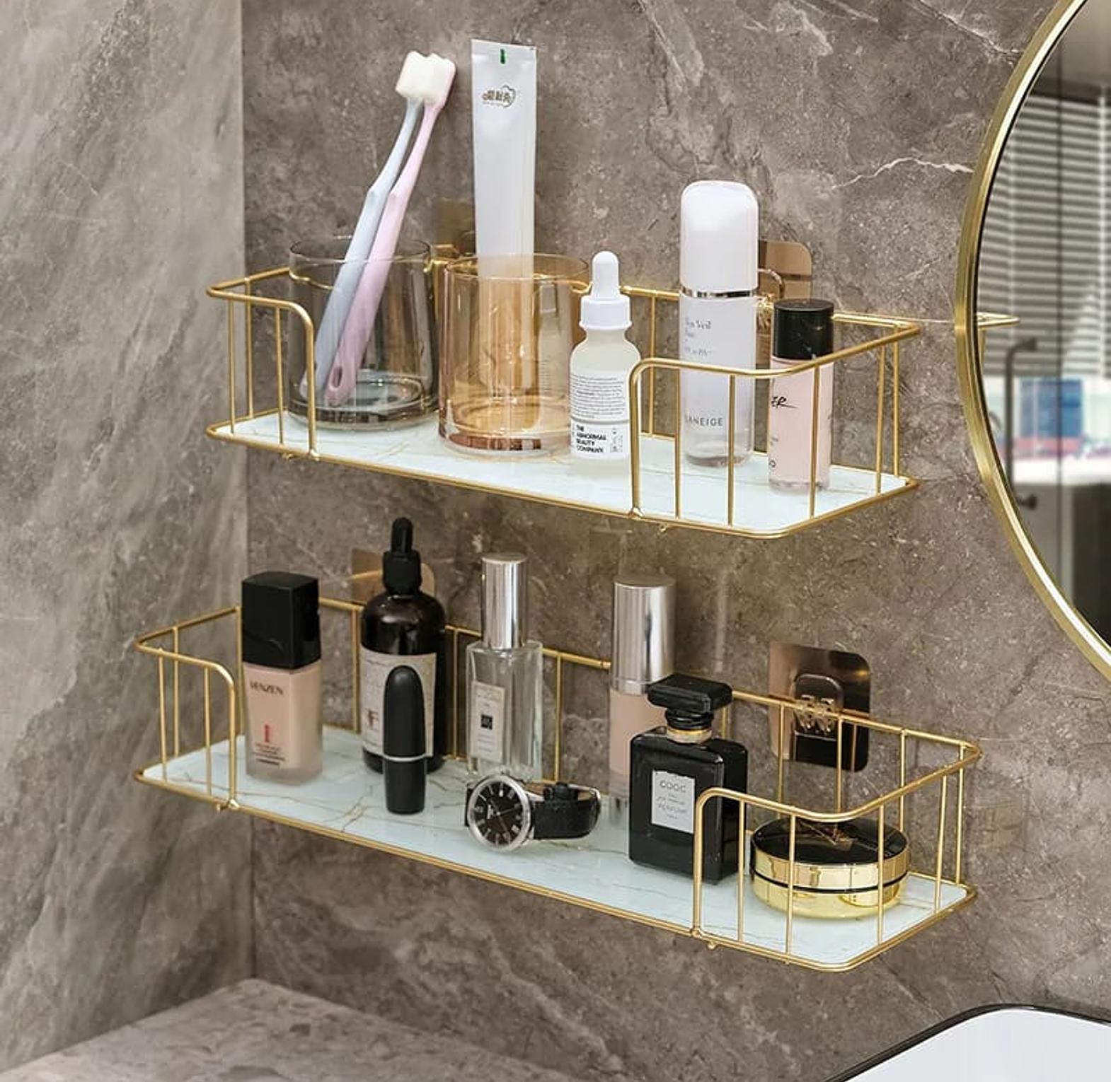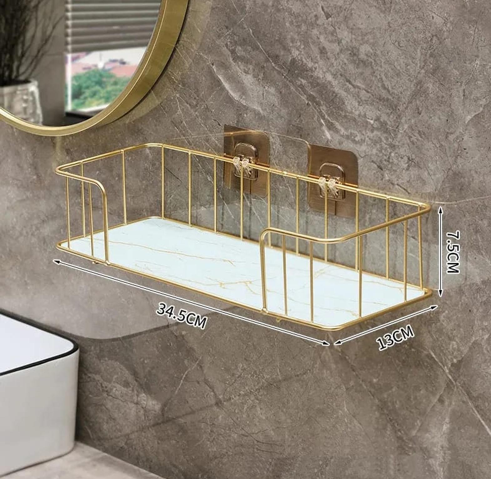 Luxury bathroom shelf with Mable glass plate 🏷️Nordic light luxury 🏷️Material: Mable glass + iron 🏷️Classy and modern 🏷️Color;White mable 🏷️Small 34.5*13*7.5