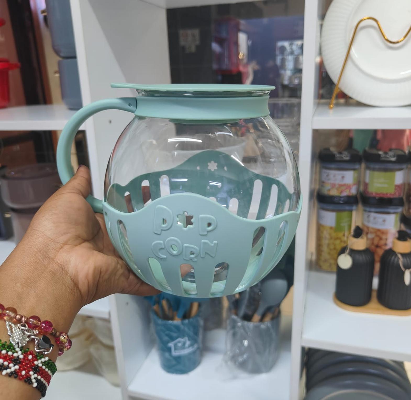 Microwave popcorn make ▫️ Material: high quality heat resistant borosilicate glass ▫️ Quick and easy popcorn (2_3 minutes) ▫️ Distinct design ▫️Lid helps measure amount of popcorn to cook