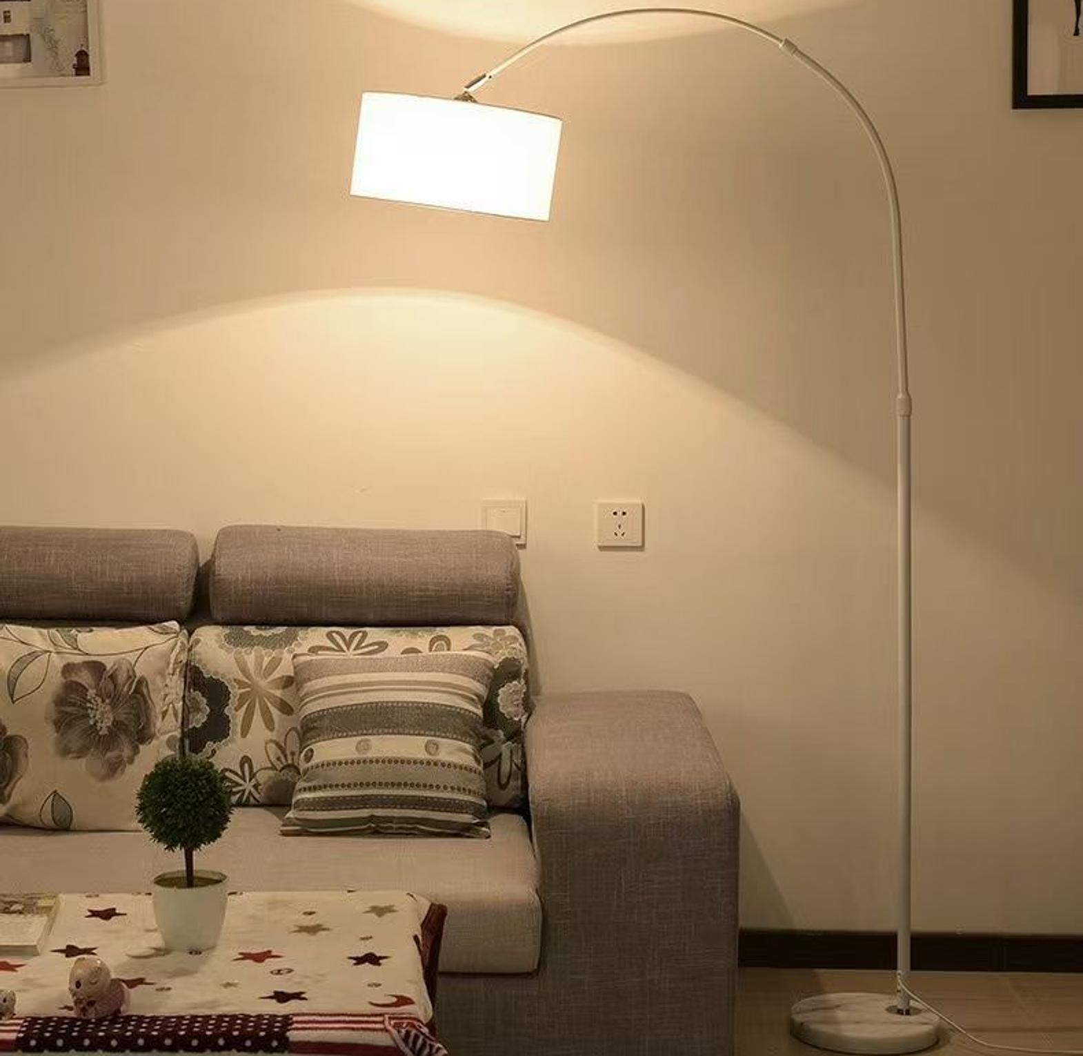 ✨Modern Adjustable Arc Floor Lamp 🖤 ▫️Sleek curved design with a wide fabric shade for a warm, cozy glow. Perfect statement piece for any living space. ▫️Size: Base 26cm | Width 55cm | Height 158–185cm | Shade 34cm