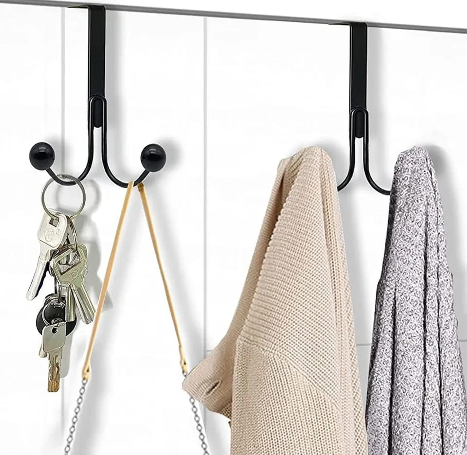 Over The Door Double Hanger Hooks Free Punching For Hanging Hats Bags Holder Tie Scarf Key Hook Clothes Coats Rack Towel Shelf