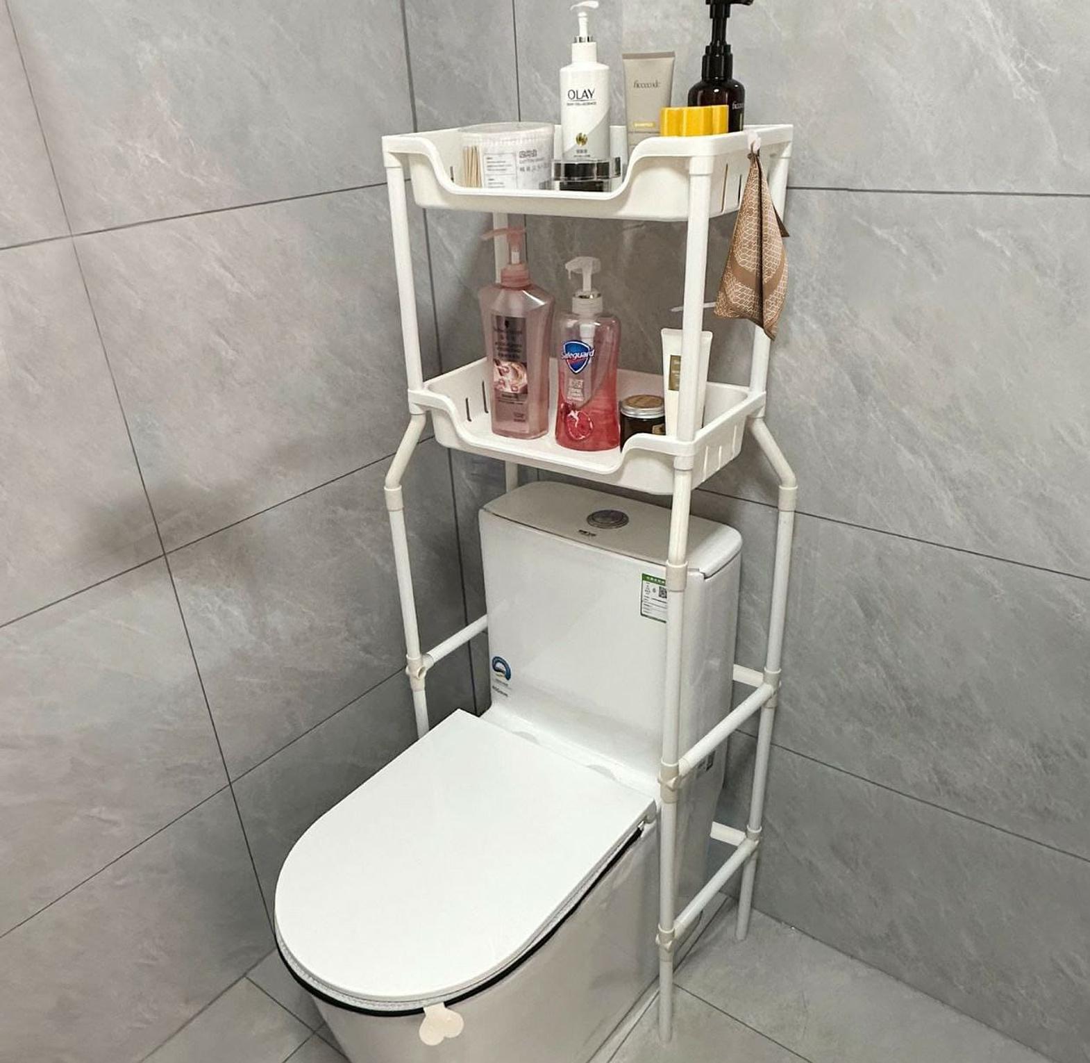 Over the toilet / bathroom organizer with organizing basket Strong bearing capacity Material PP and stainless steel Easy storage of daily Toileteries