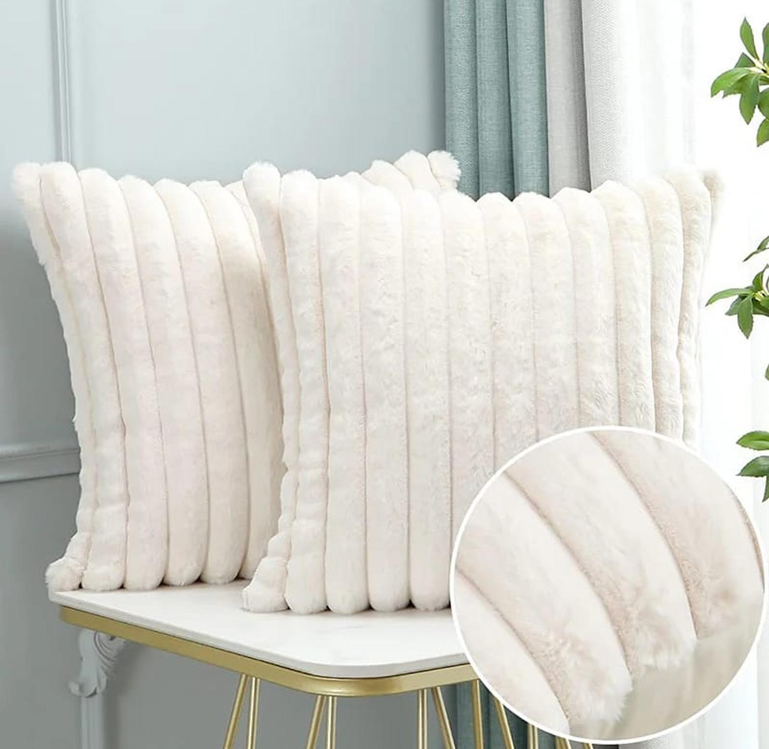 Solid Colour soft Plush Pillowcases Fur Ribbed Cushion Cover