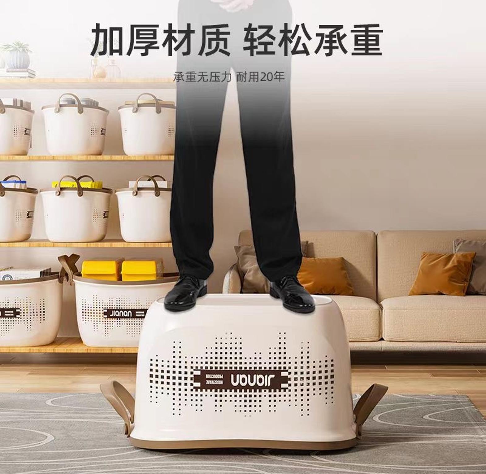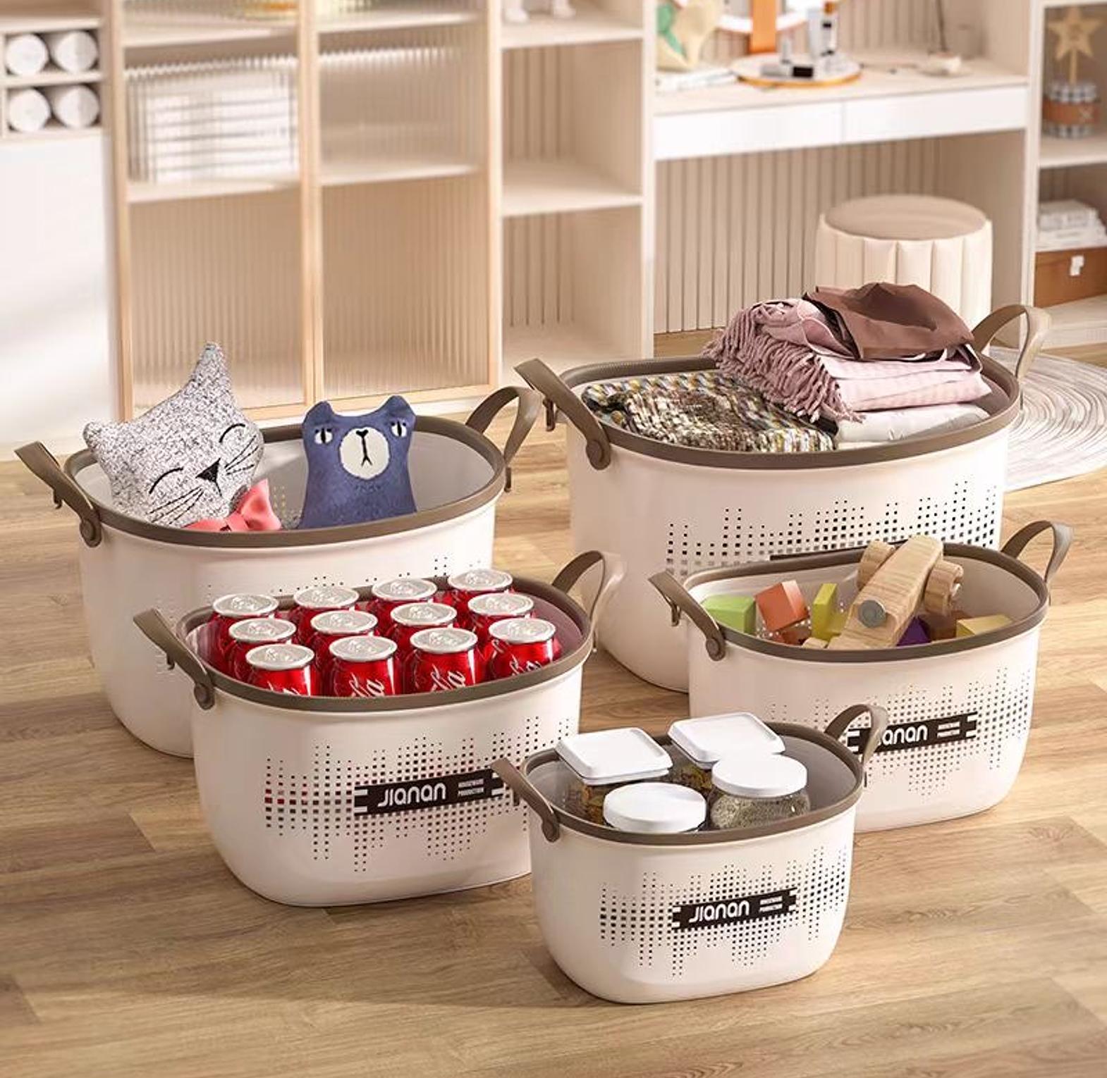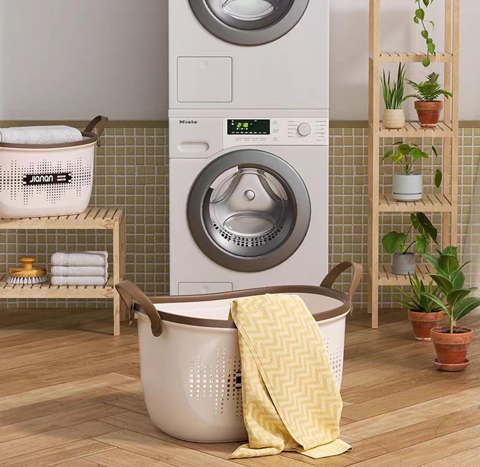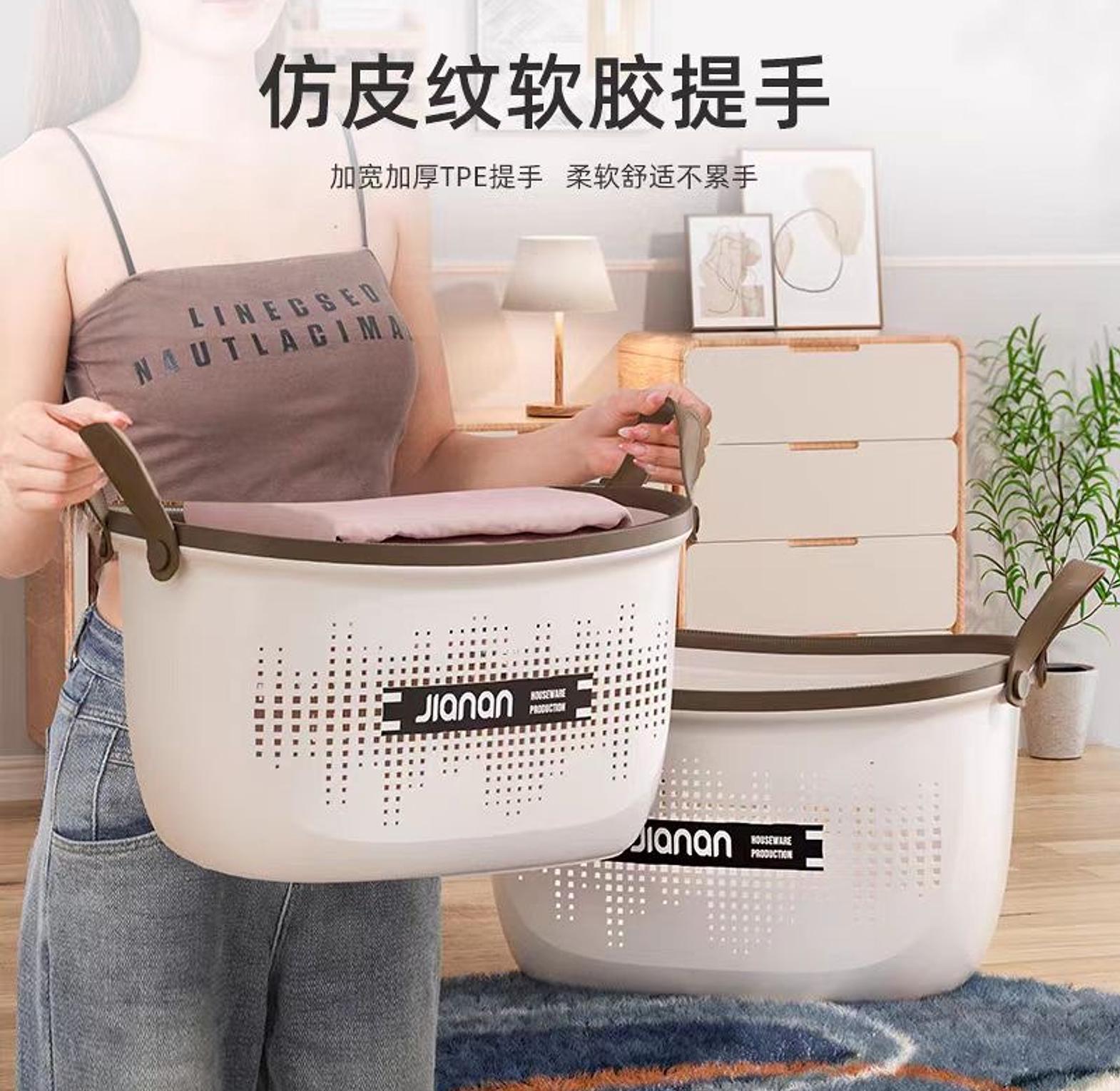 Elevate your laundry experience with our chic plastic laundry basket featuring elegant leather handles. This stylish yet functional basket combines durability with a sophisticated look, perfect for any home.