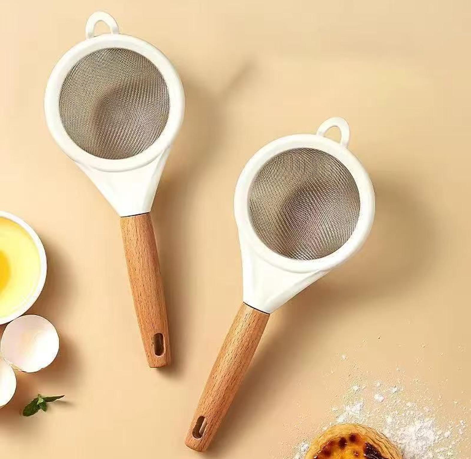 Wooden finish handle stainless steel Mesh sieve