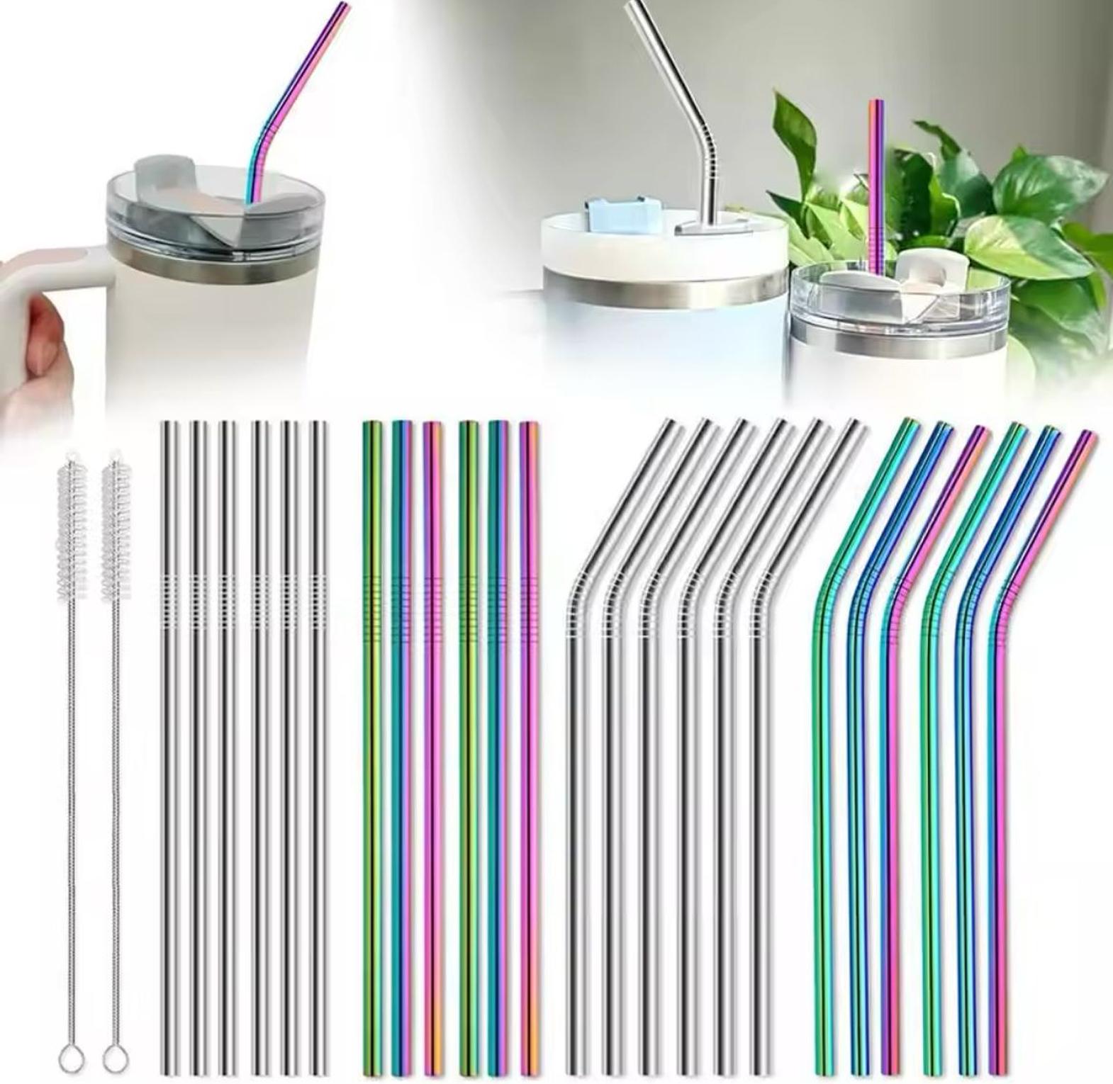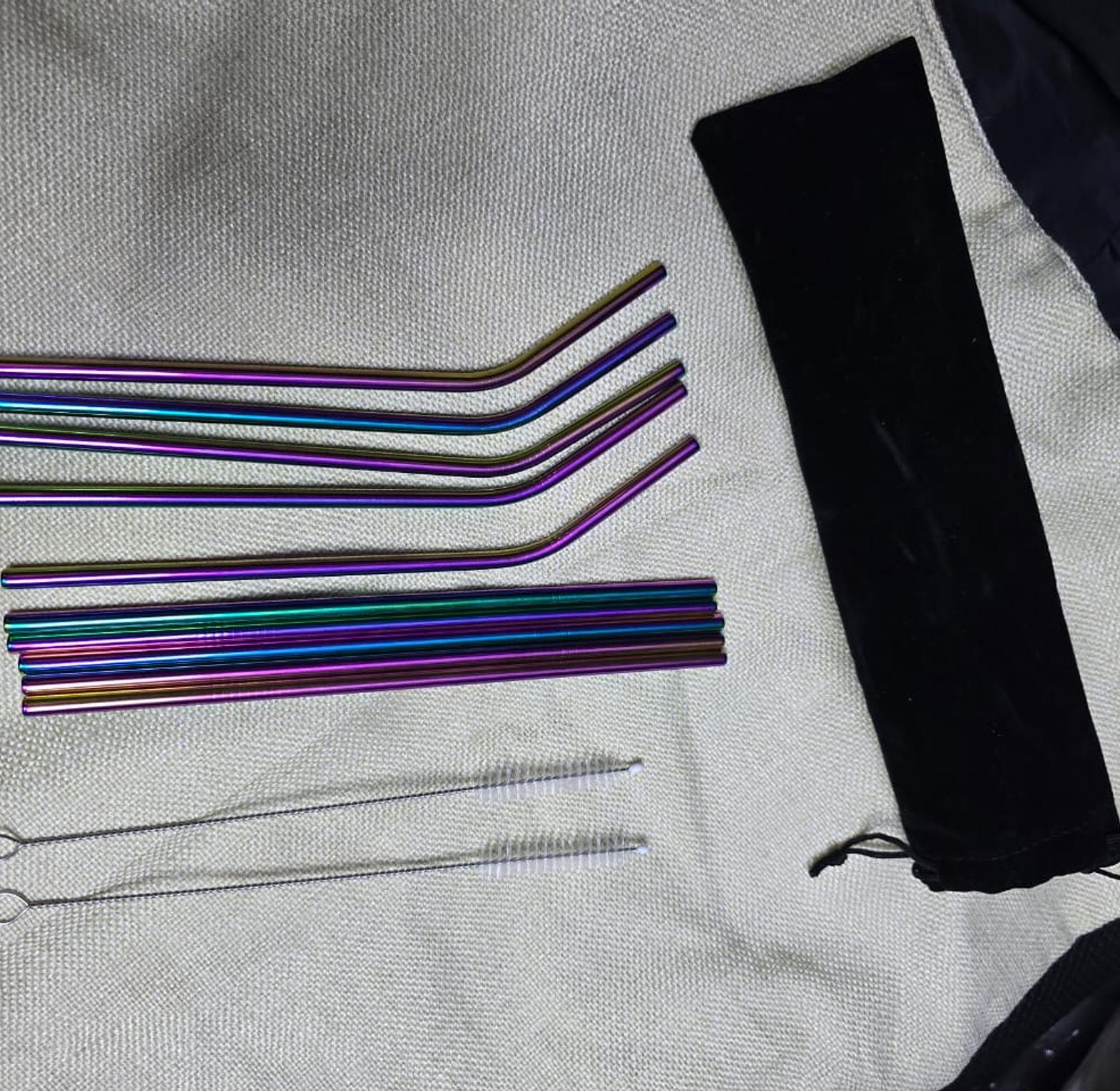 10pcs Straw set plus 2 cleaning brushes Multicolour