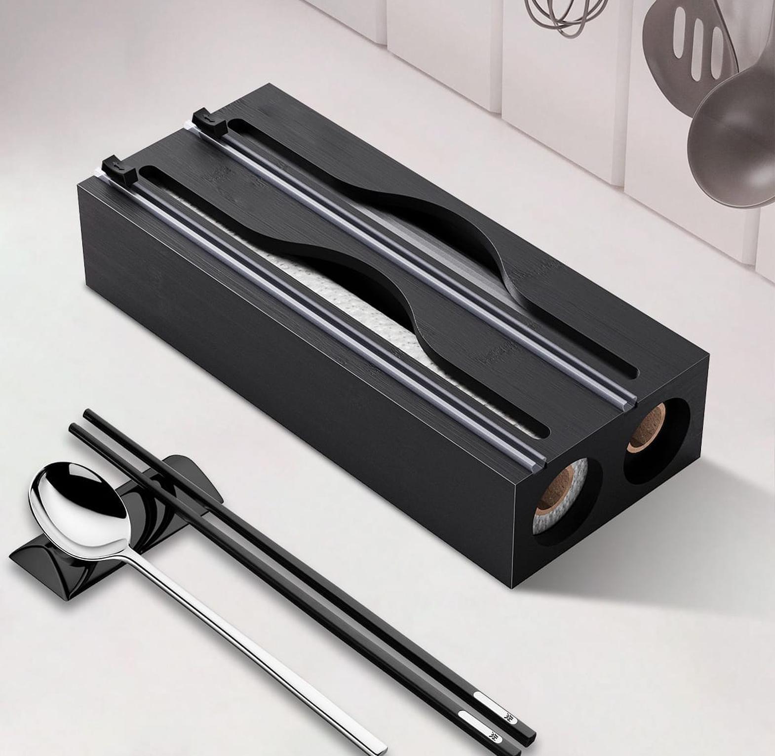 2in1 Bamboo wrap dispenser with cutter