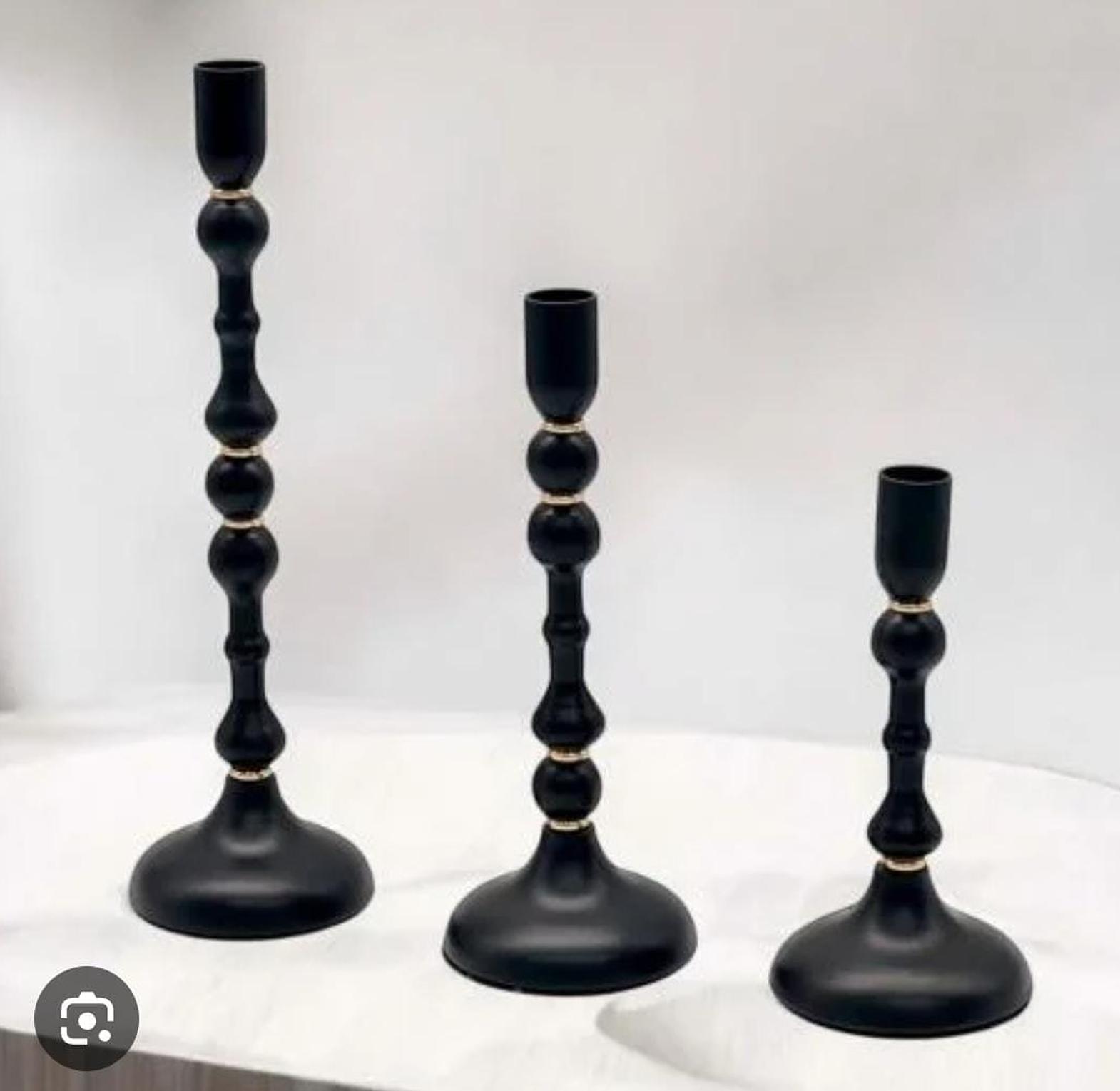 3in1 Candlestick holder with gold ring material: metallic colours:black available