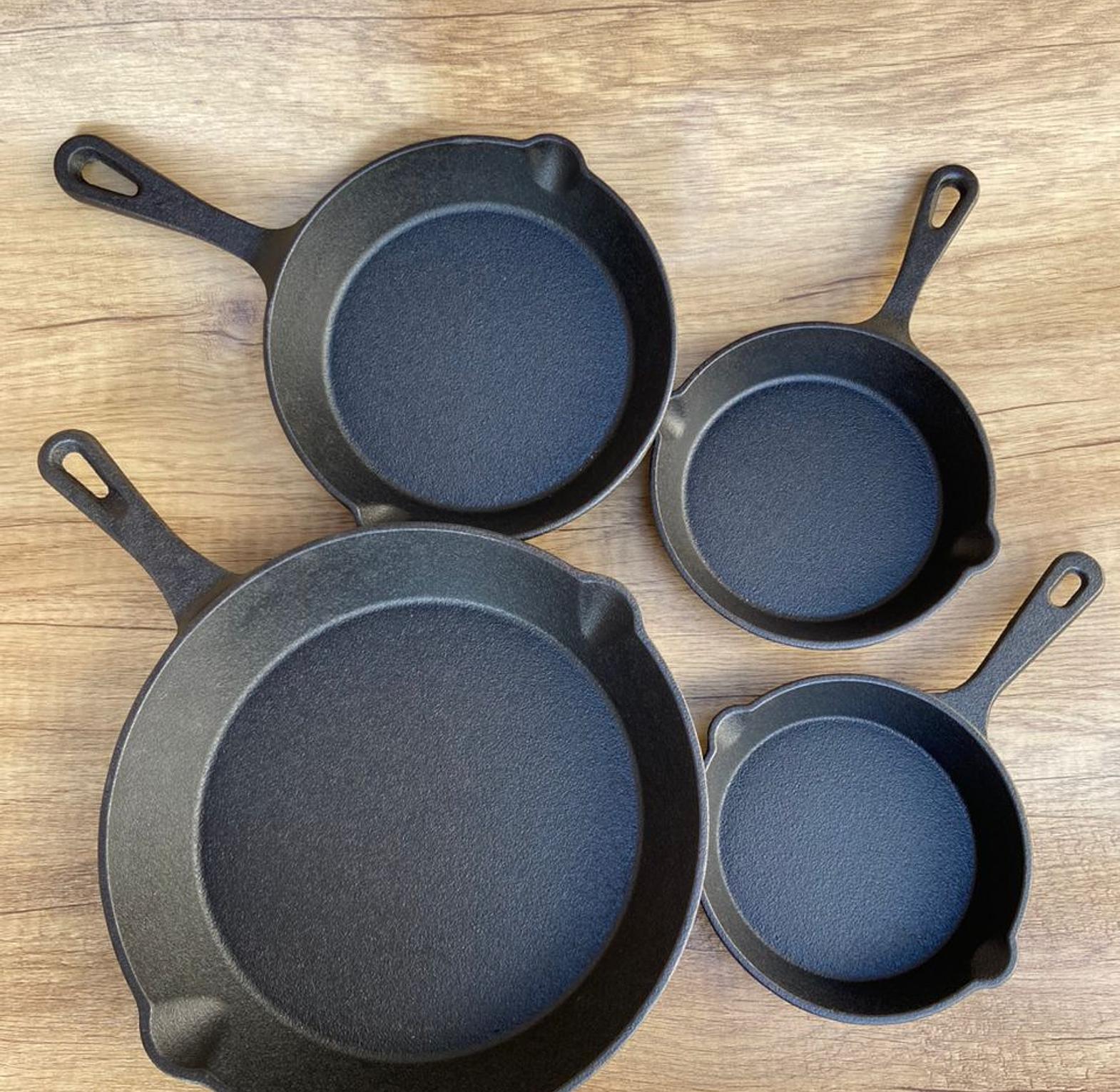 4pc Cast iron frying pans 26cm 20cm 16cm 14cm