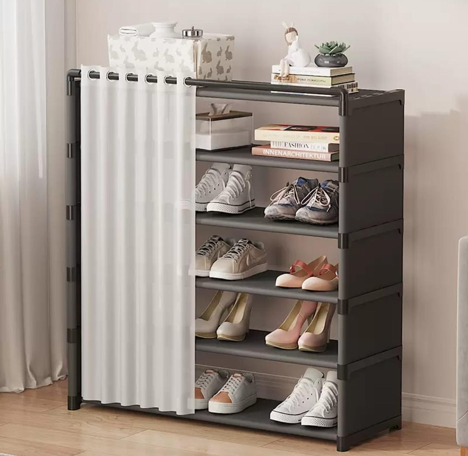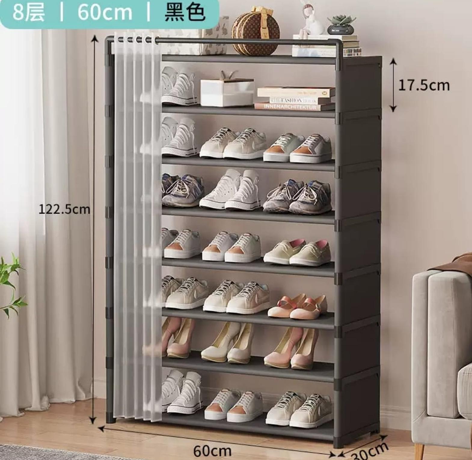 8- layer shoe rack organizer with fabric dustproof cover • New upgraded shoe rack ideal for the entrance • Home space saving shoe rack • Size:123*60*30cm • Folding dustproof curtain like style - Study, Durable Color:Black