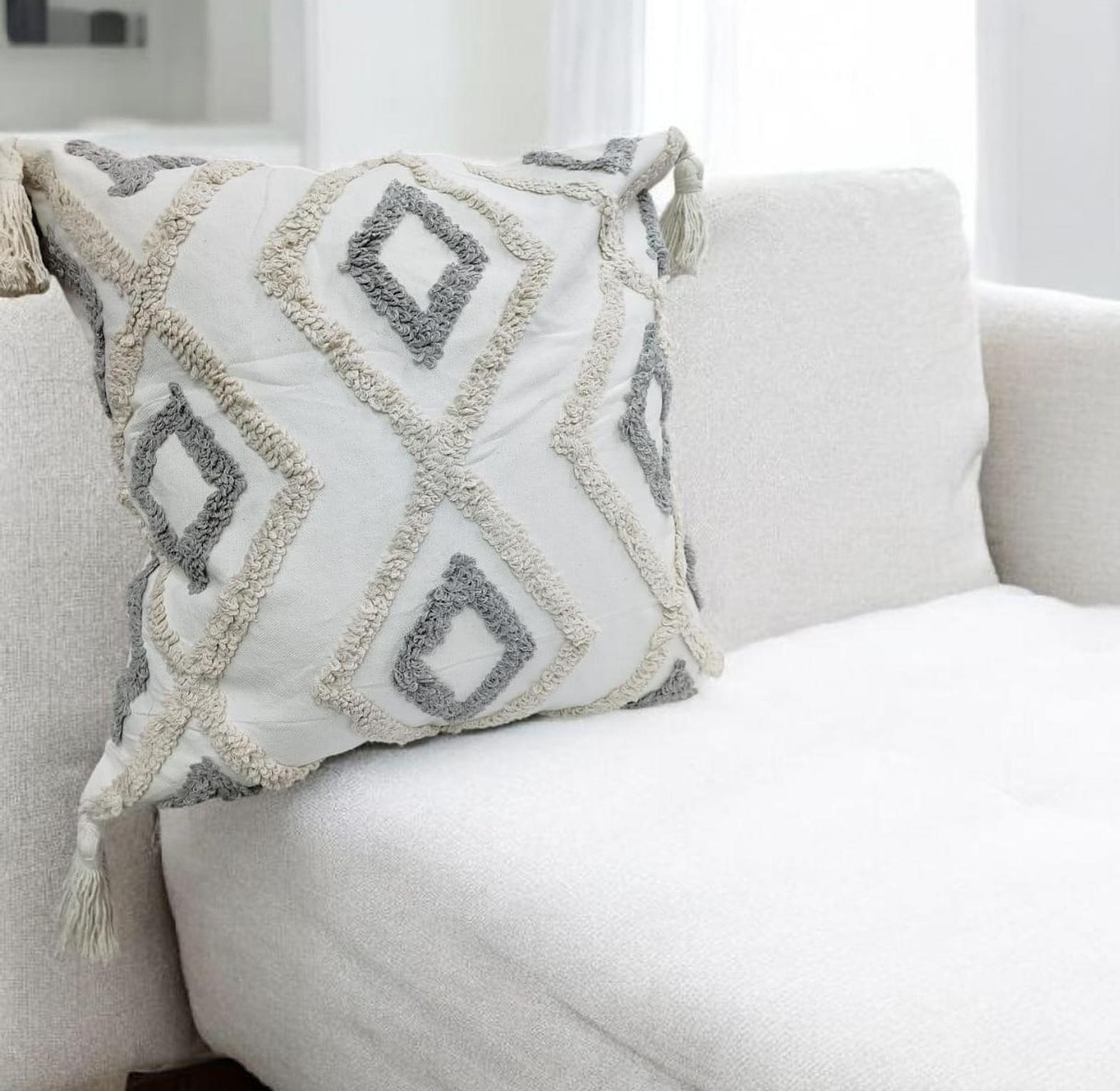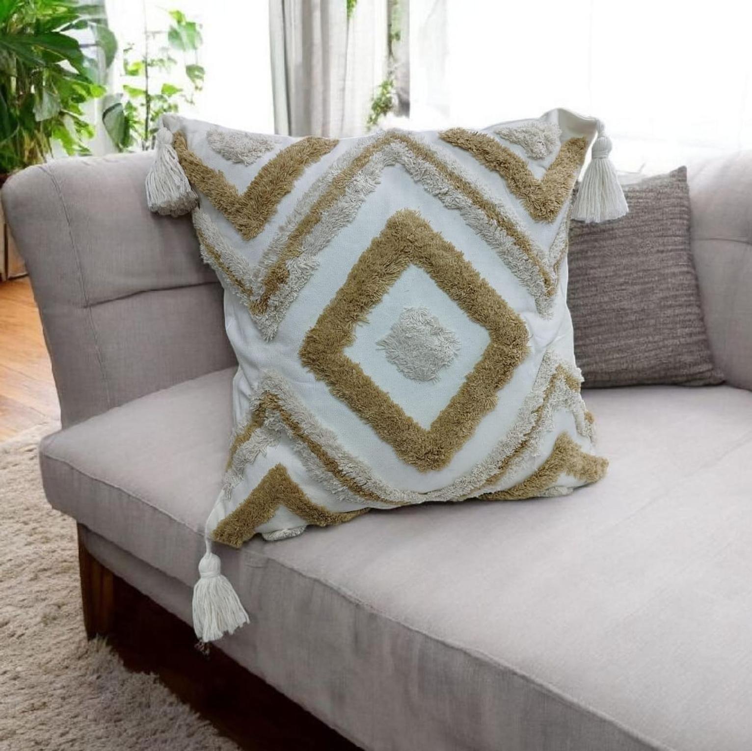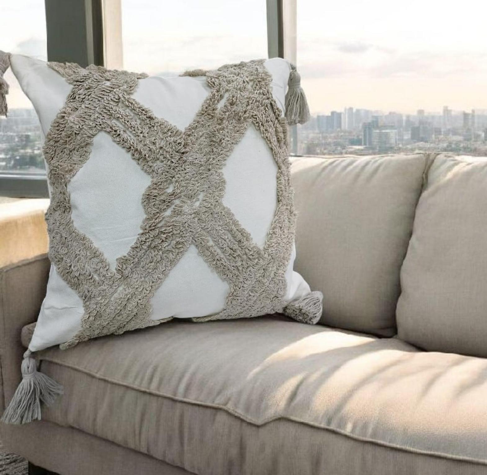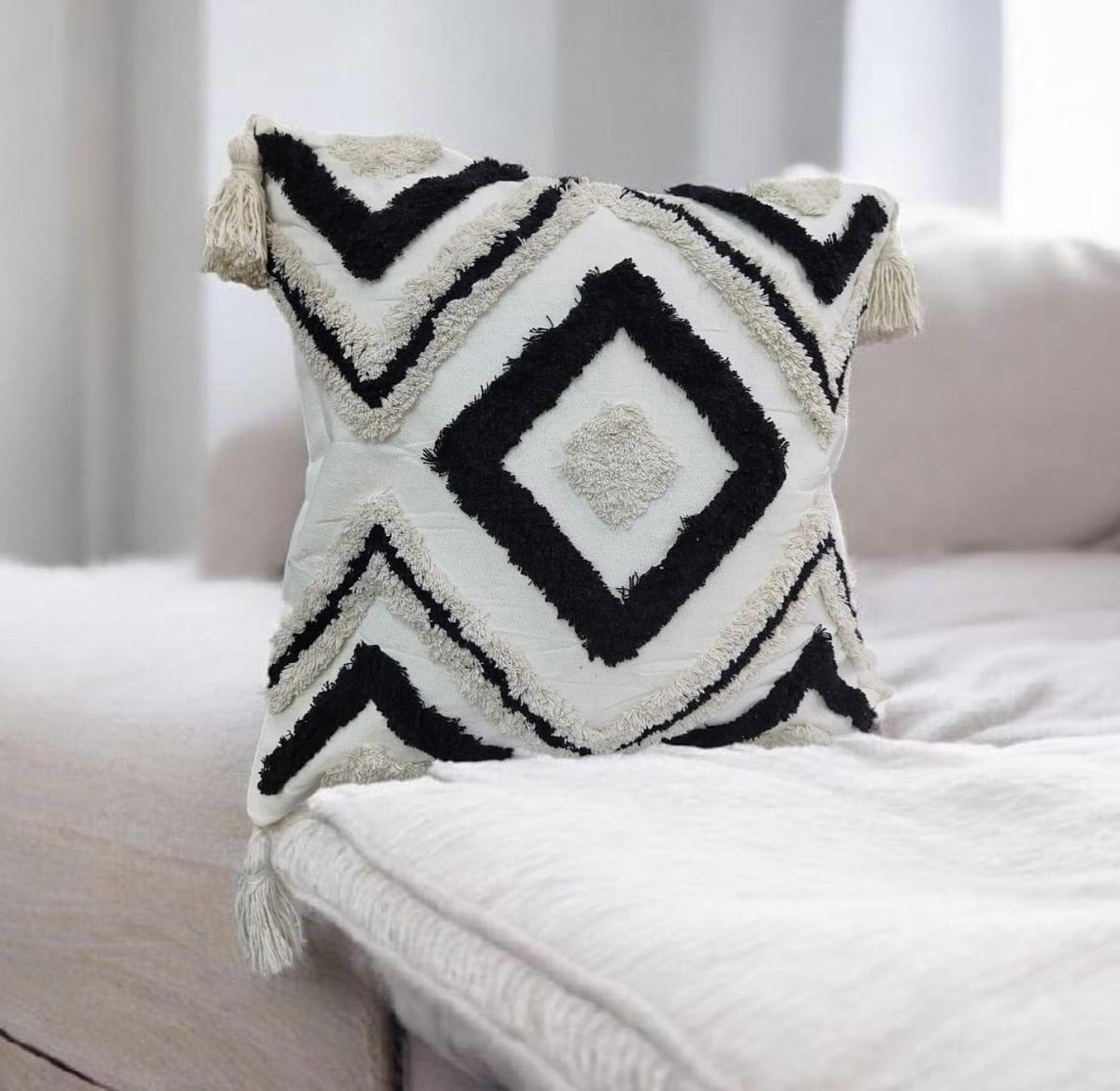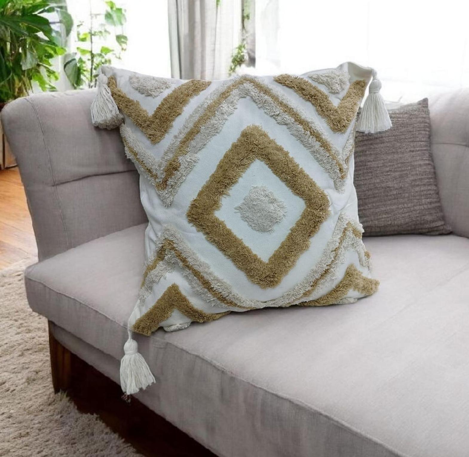 Boho pillowcases featuring textured tufted patterns and chic tassel details, perfect for adding warmth, style, and a cozy bohemian touch to your living space.