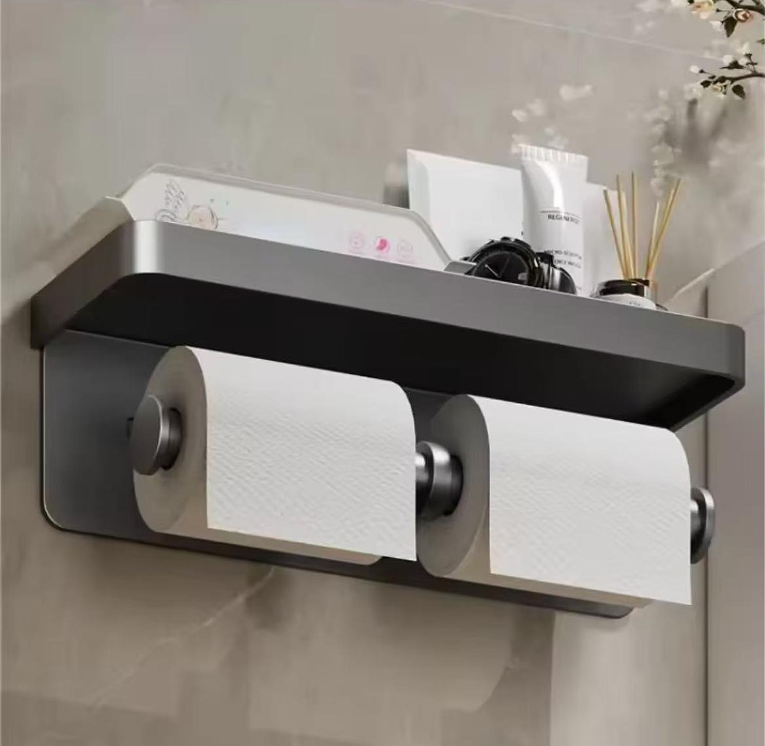 Designed for maximum convenience, it features a double-roll dispenser to ensure you never run out, paired with a spacious integrated top shelf perfect for holding wet wipes, phones, watches, or decorative items