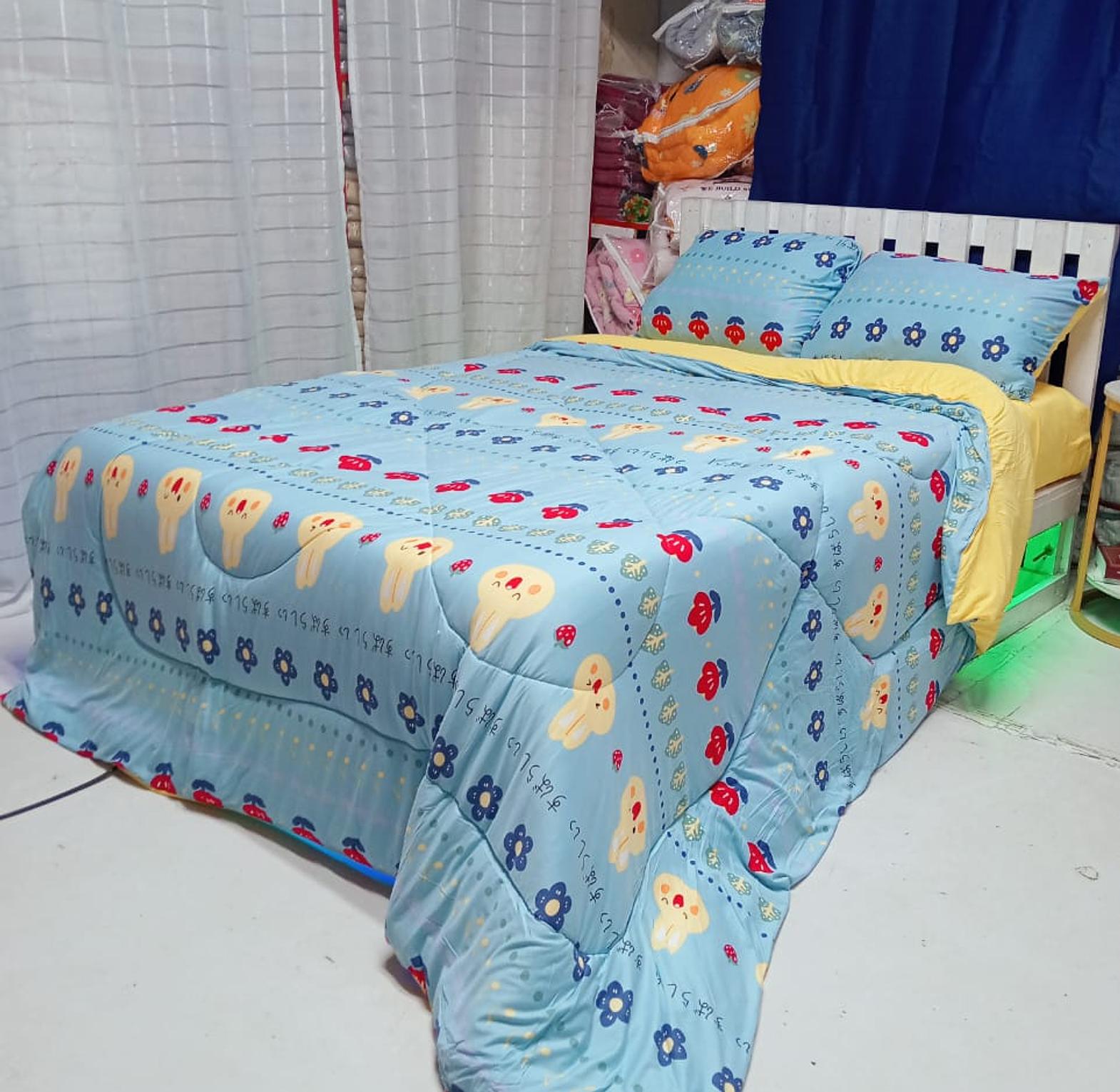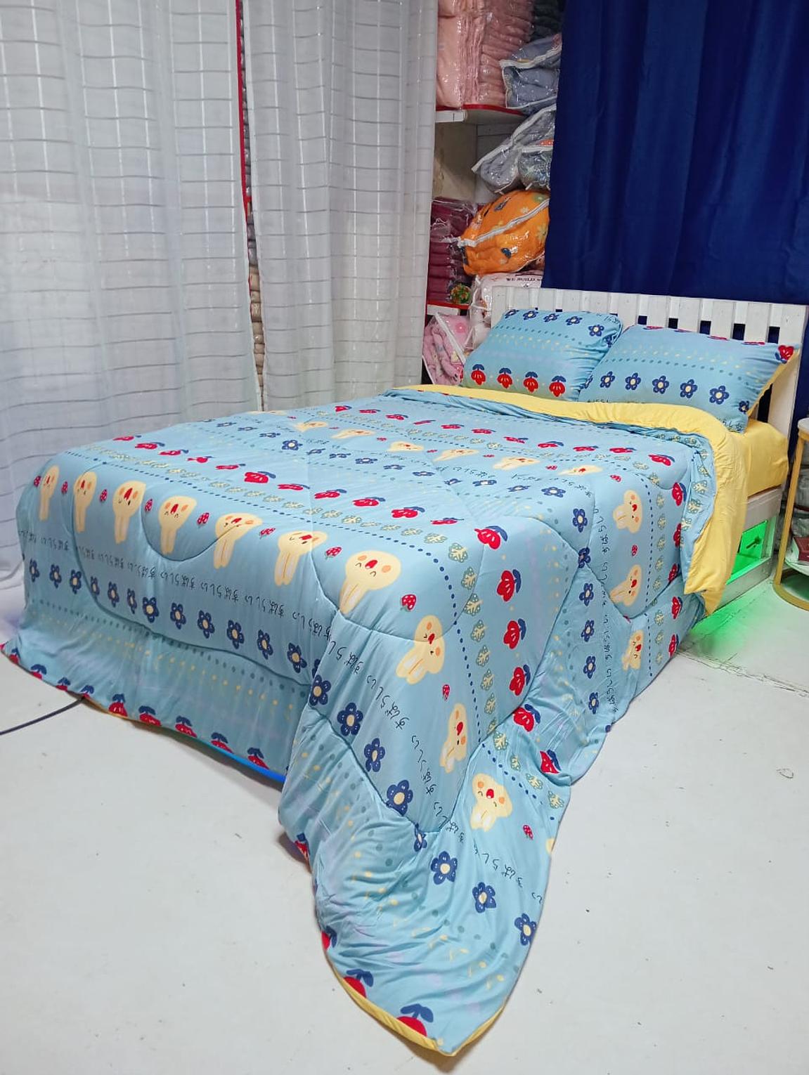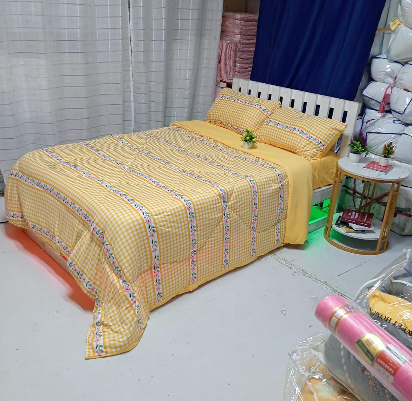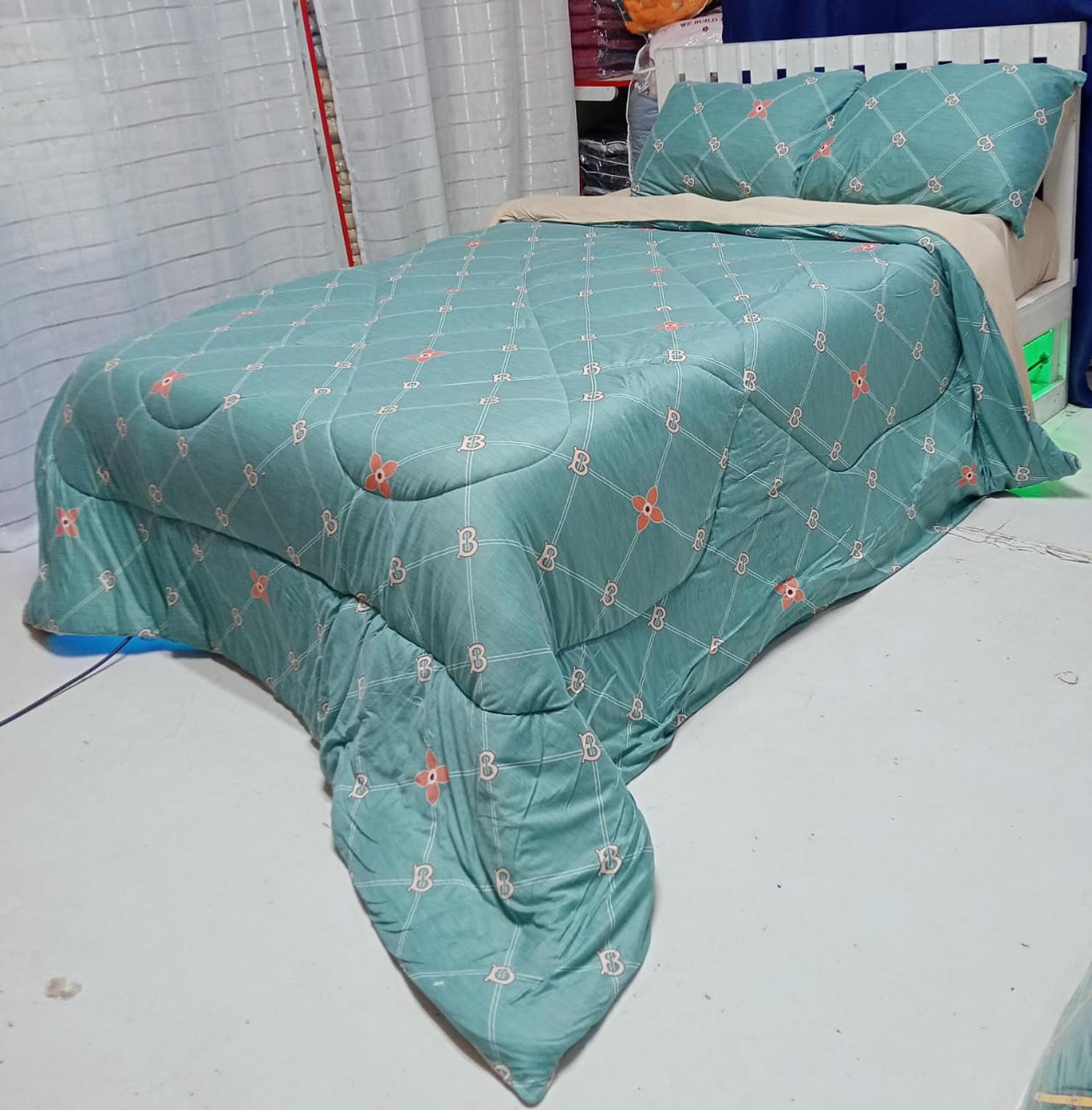 LYCRA Double Sided Cotton Duvet ☑️Size:5×6/6×6 ▫️Duvet ▫️1Bedsheet ▫️2pillowcases