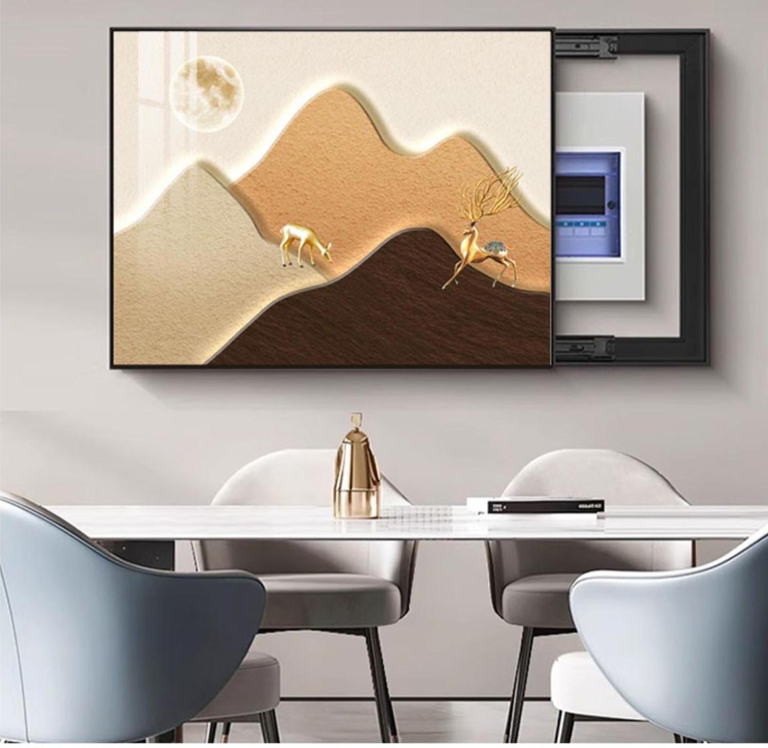 A stylish and creative wall décor painting designed to beautifully cover your meter box while enhancing your space. Made with a sturdy frame and high-quality print, it adds elegance to your living room, hallway, or office while neatly concealing exposed utility boxes.