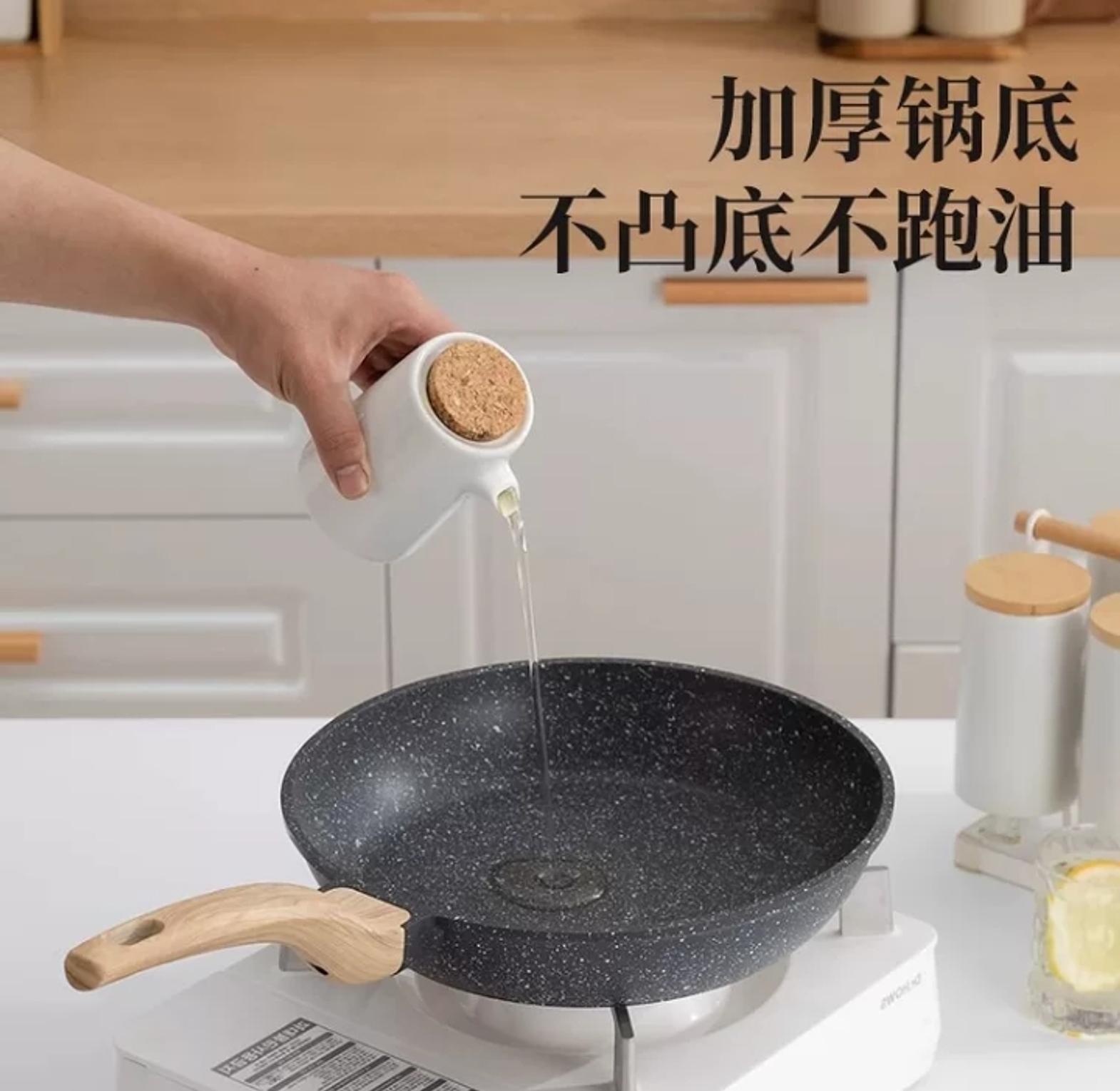 Granite Non-Stick Frying Pan ▪️Even heat. Less oil. Easy clean. ▫️Stylish wood-effect handle ▫️Available in black & beige ▫️Size :28cm ▫️Very heavy Your new everyday kitchen fave! 💛