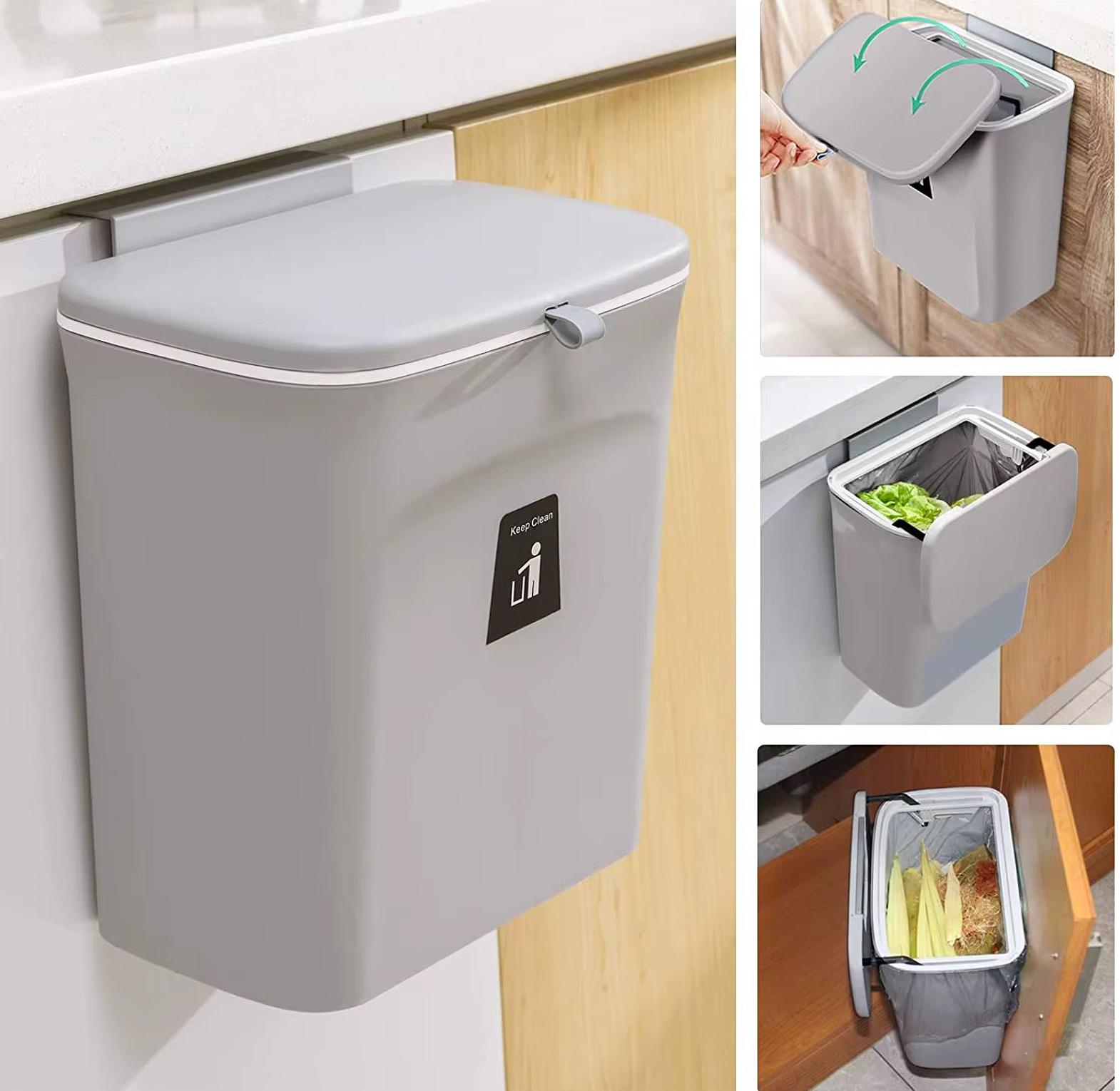 Kitchen Wall mounted trash can with lid/ wall hanging waste bin.