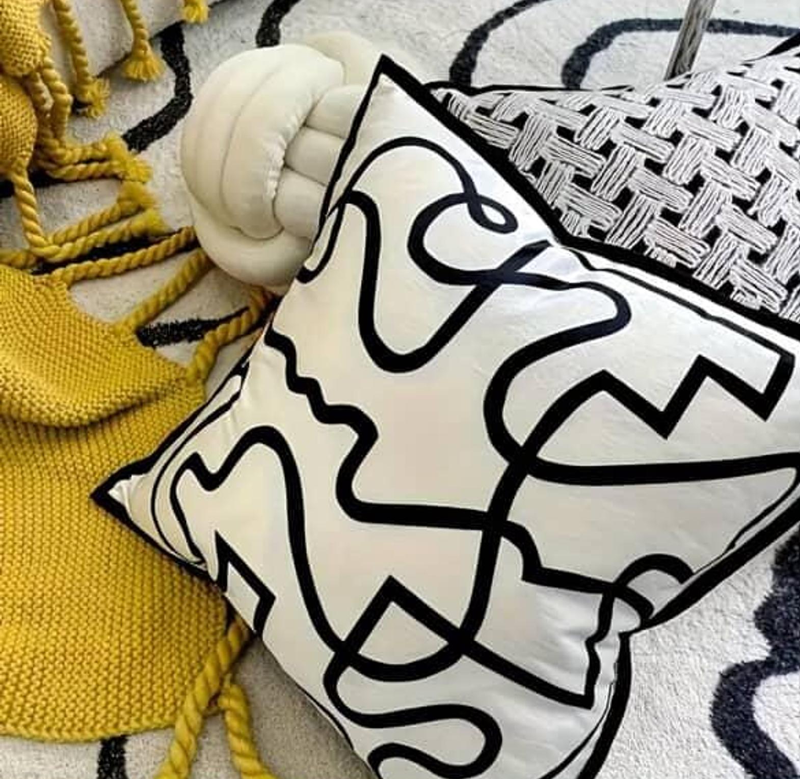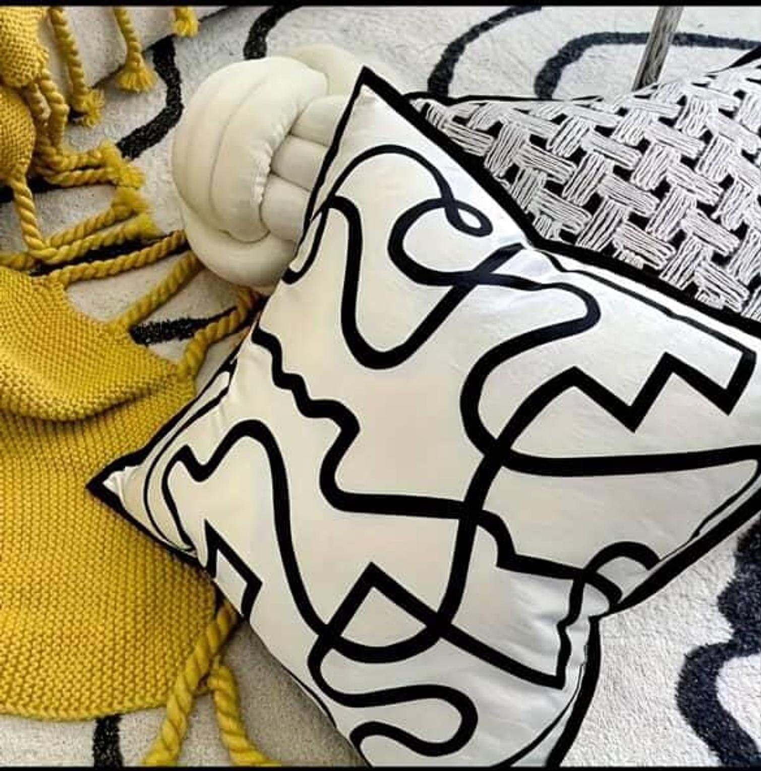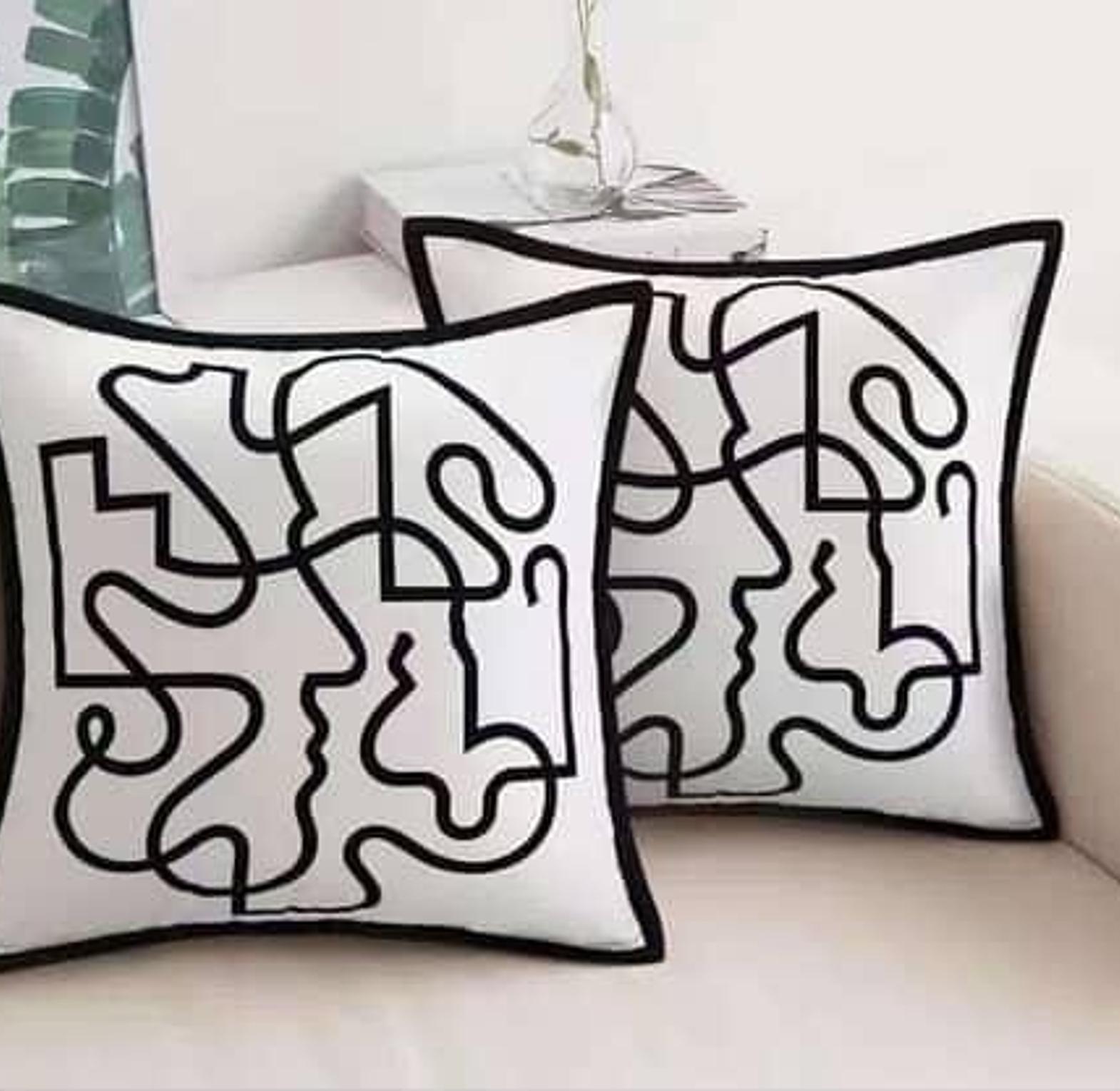 Modern Abstract Black and White Throw Pillow Cover Contemporary Geometric Design with Black Lines Size 45x45cm