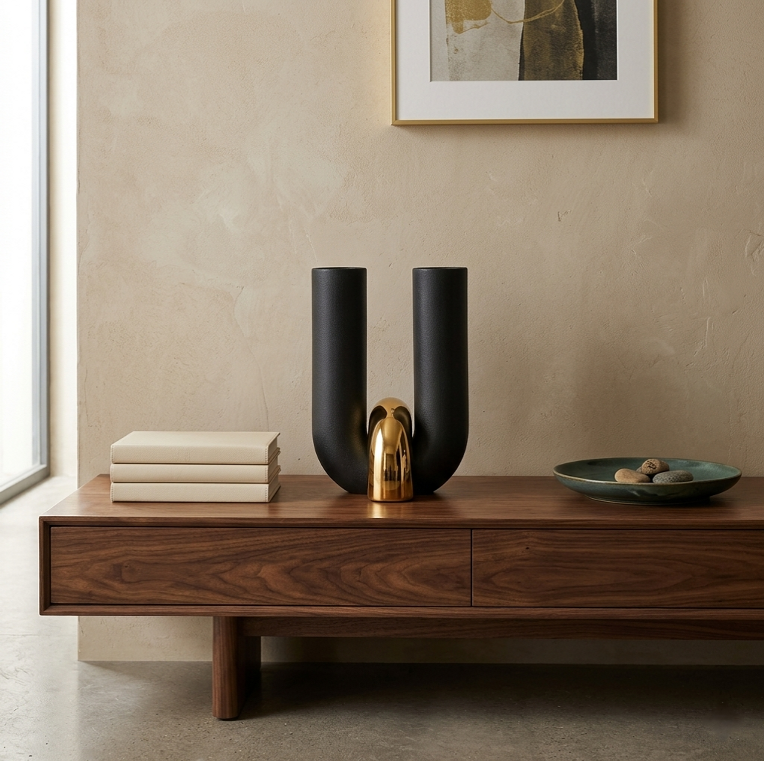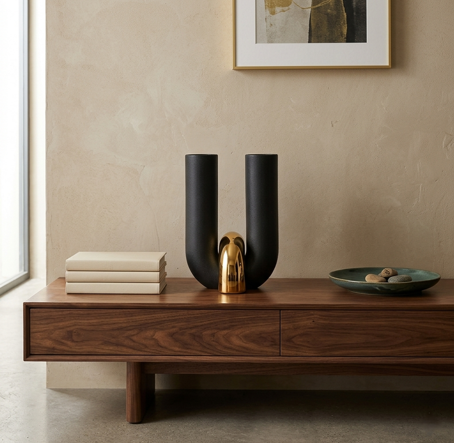 ▫️A bold and sophisticated ceramic vase designed to bring a modern luxury feel to any space. Its unique sculptural shape and elegant black finish make it the perfect statement piece for consoles, shelves, and coffee tables.